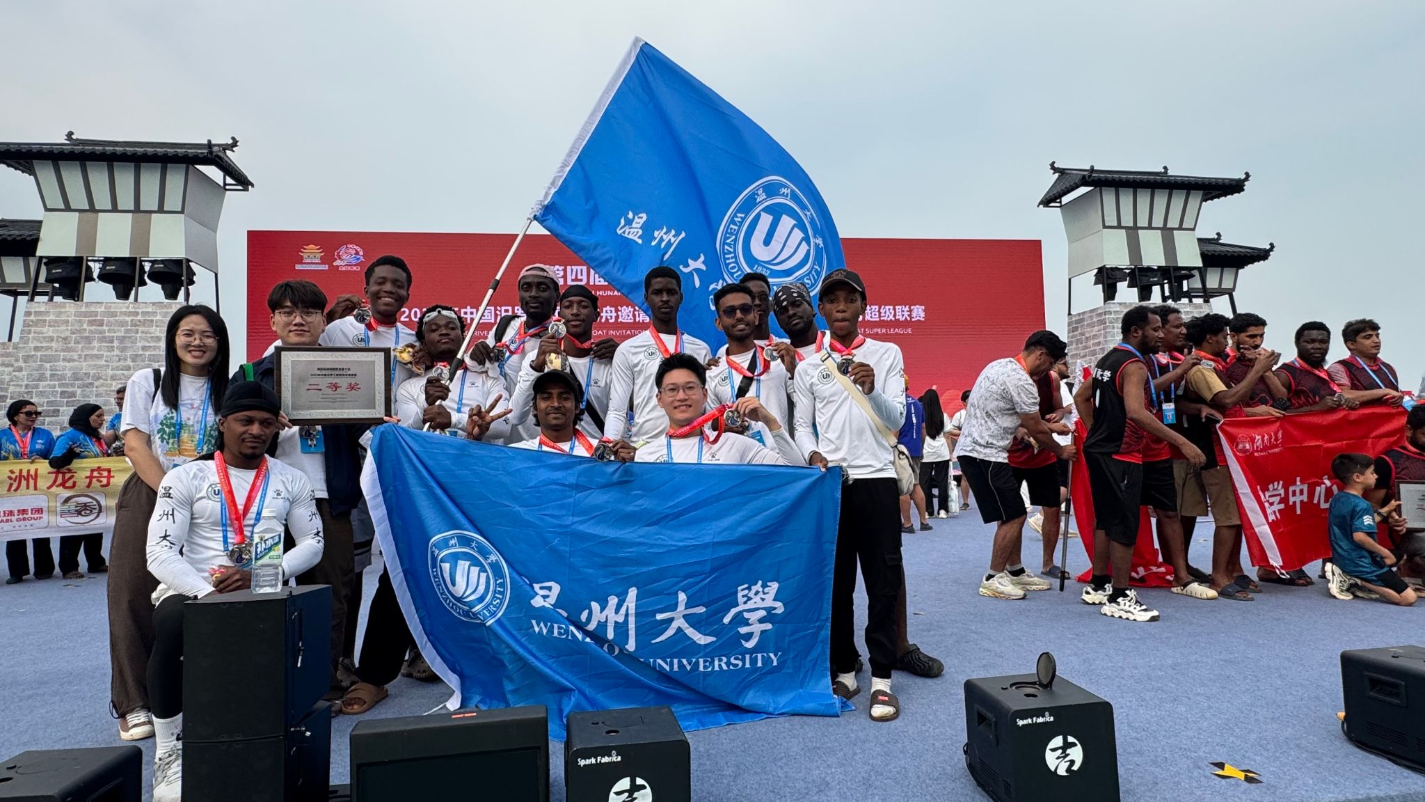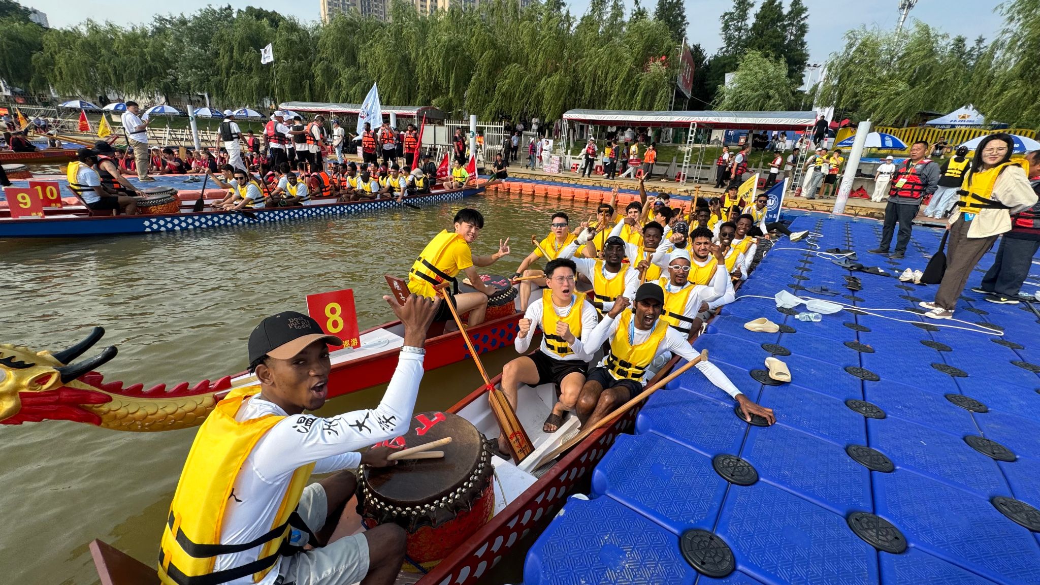 国际龙舟队应邀赴湖南汨罗参加2025年中国汨罗江国际龙舟邀请赛暨“屈原酒”杯第二届龙舟超级联赛。来自越南、孟加拉、摩洛哥、尼日利亚、利比里亚、赞比亚、津巴布韦、索马里等国的留学生代表校国际龙舟队与日本、韩国、新西兰、同济大学、北京理工大学、中南大学等12支国际组龙舟队展开激烈角逐,他们以昂扬的斗志和非凡的团结精神勇夺国际组二等奖、高校组第二名的好成绩。