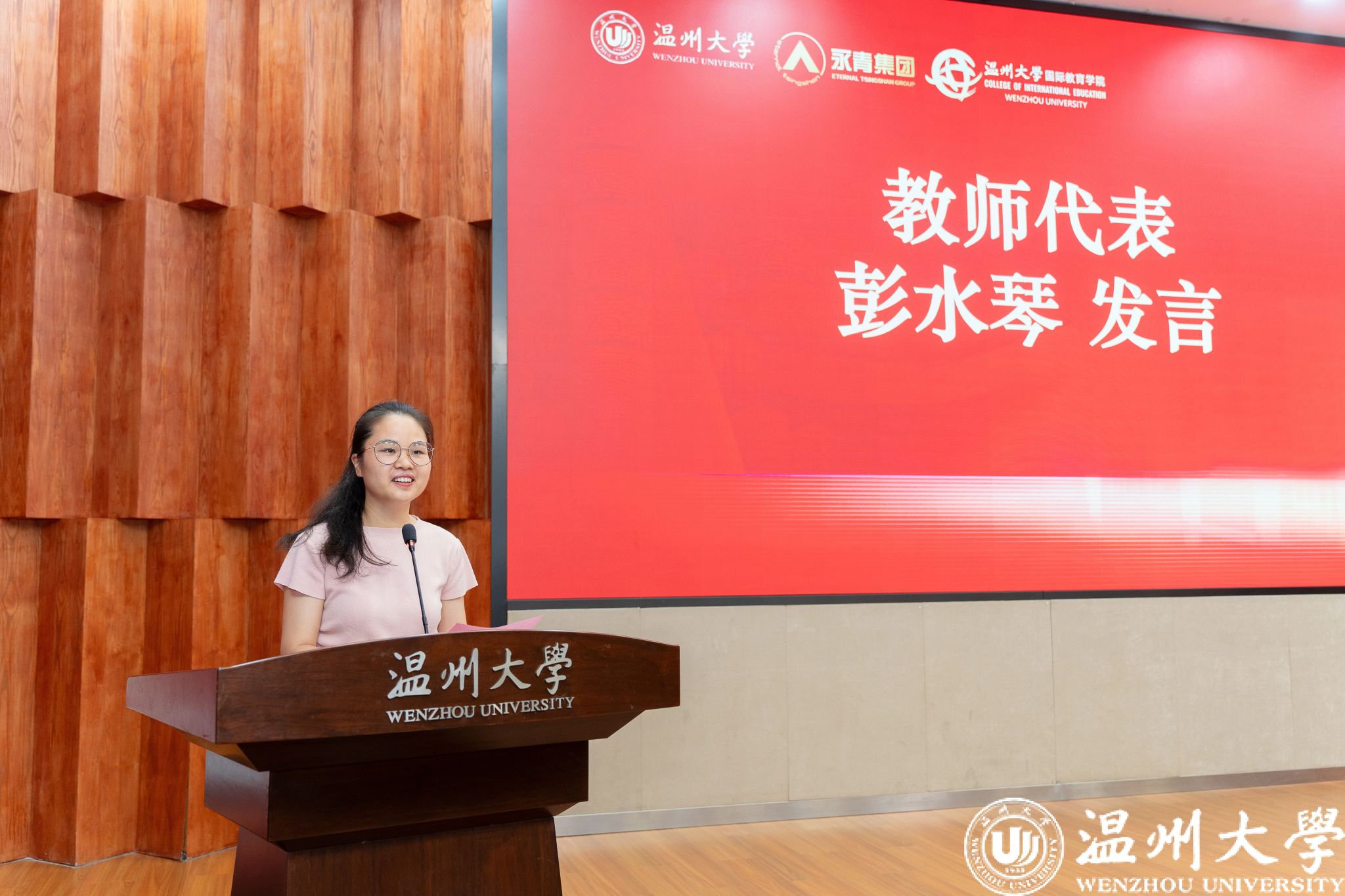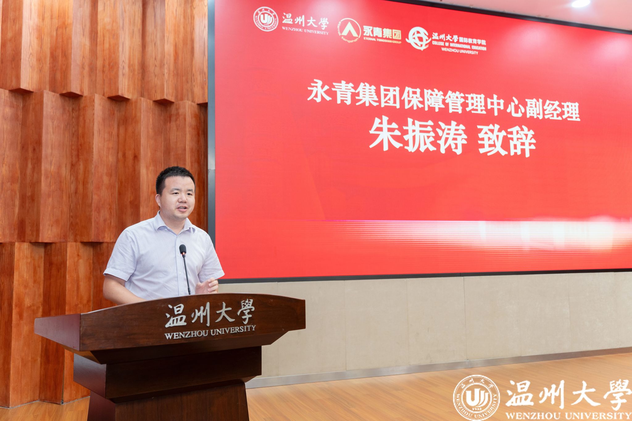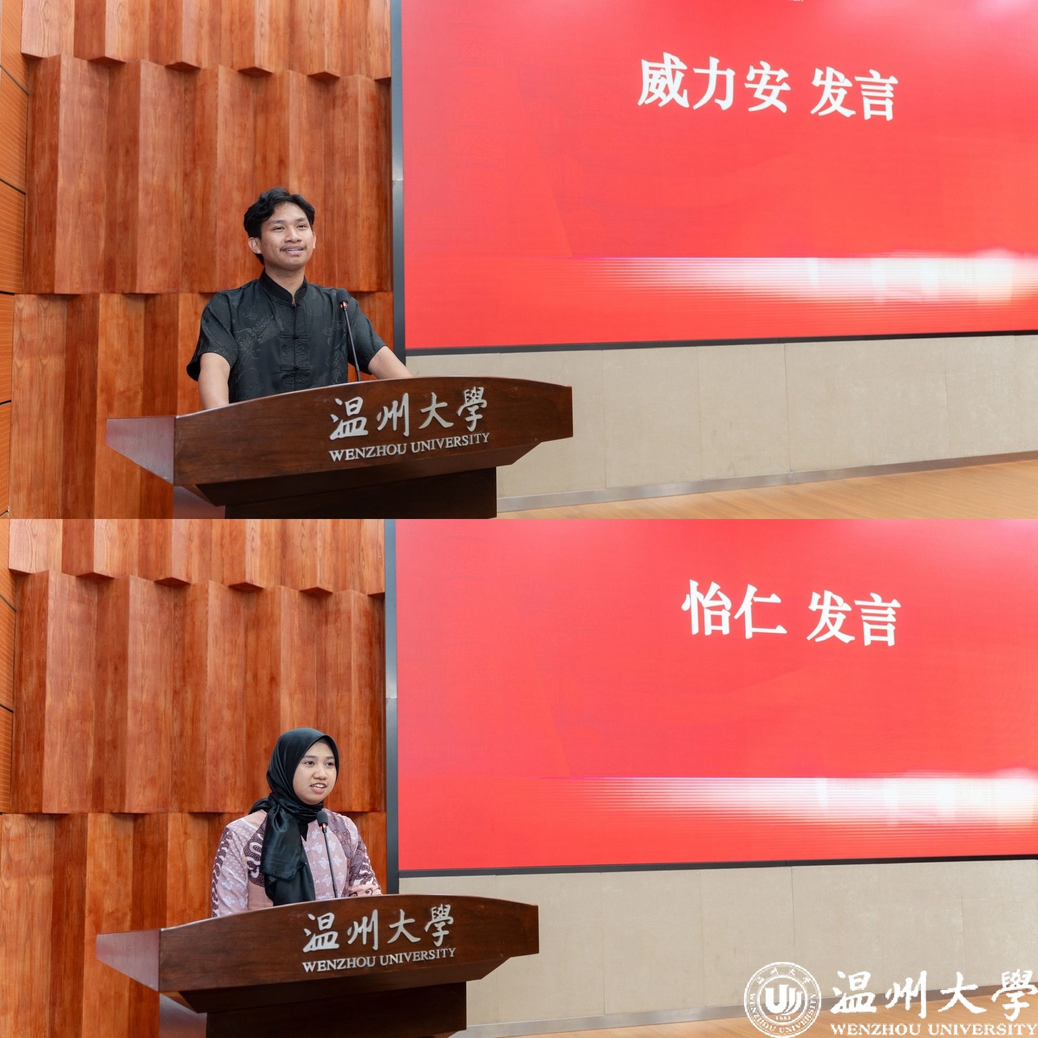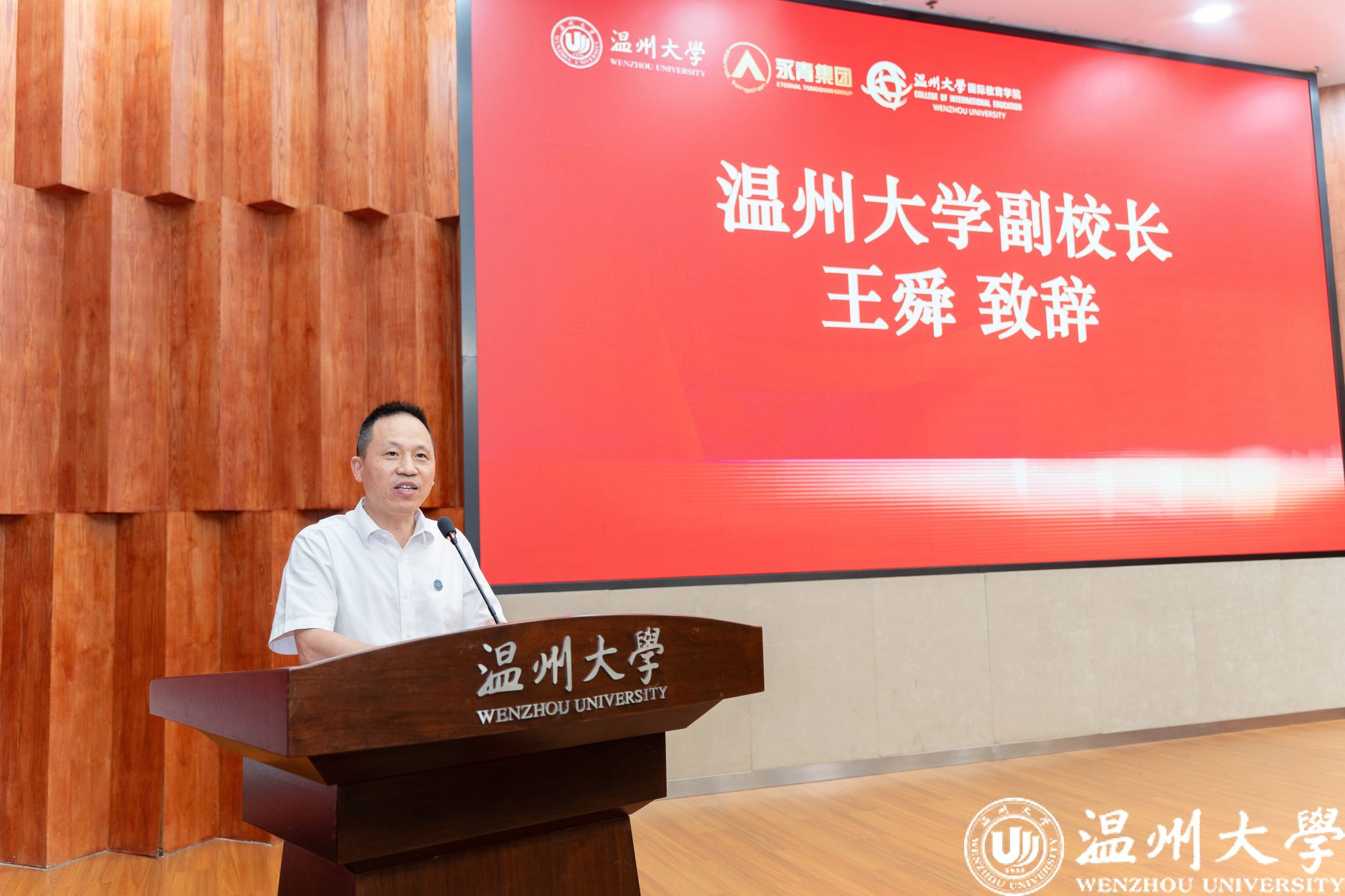 副校长王舜发表致辞。他首先向圆满完成学业的学员们表示祝贺,并高度肯定了青山班作为中印尼文化交流桥梁的重要意义。王舜勉励学员做“语言与文化的传播者”“创新与合作的践行者”“友谊与发展的见证者”,希望他们带着温大精神,在未来的职业道路上绽放光彩。