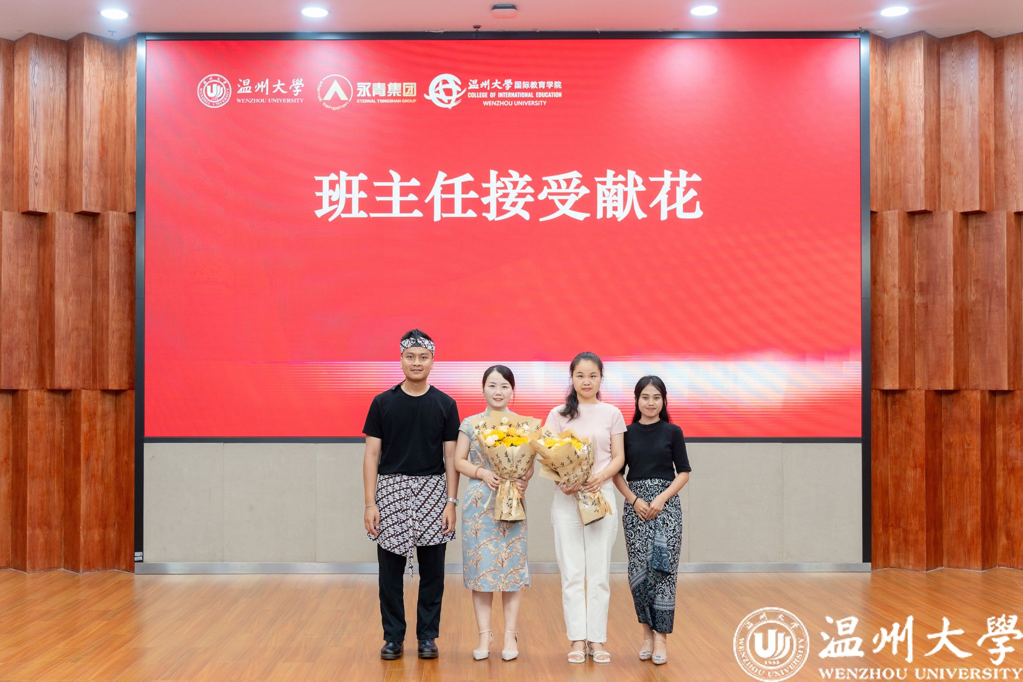 教师代表彭水琴老师动情地回顾了教学过程中的点点滴滴,言语中满是对学生的不舍与祝福。学生代表威力安和怡仁用流利的汉语分享了学习感悟,表达了对母校和老师的感激之情。在感恩献花环节,学员们手捧鲜花走向老师,一个个深情的拥抱让在场众人为之动容。