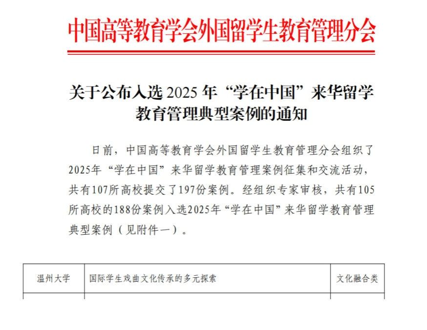 申报的《国际学生戏曲文化传承的多元探索》成功入选“文化融合类”典型案例。