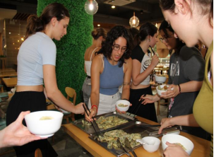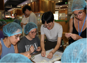 若说书法是“纸上的艺术”,那饺子便是“舌尖上的中国”。留学生们围在案板前,跟着食堂大厨一步步学习如何包出好看的饺子。同学们上手都非常快,不仅很快包出了传统的饺子形状,有人还把饺子捏成了“小元宝”,还有人创新做出了“意式褶皱款”。一顿饺子宴,不仅让留学生们品尝到了中国味道,更感受到了中国人“以食为媒”的待客之道与团圆文化。