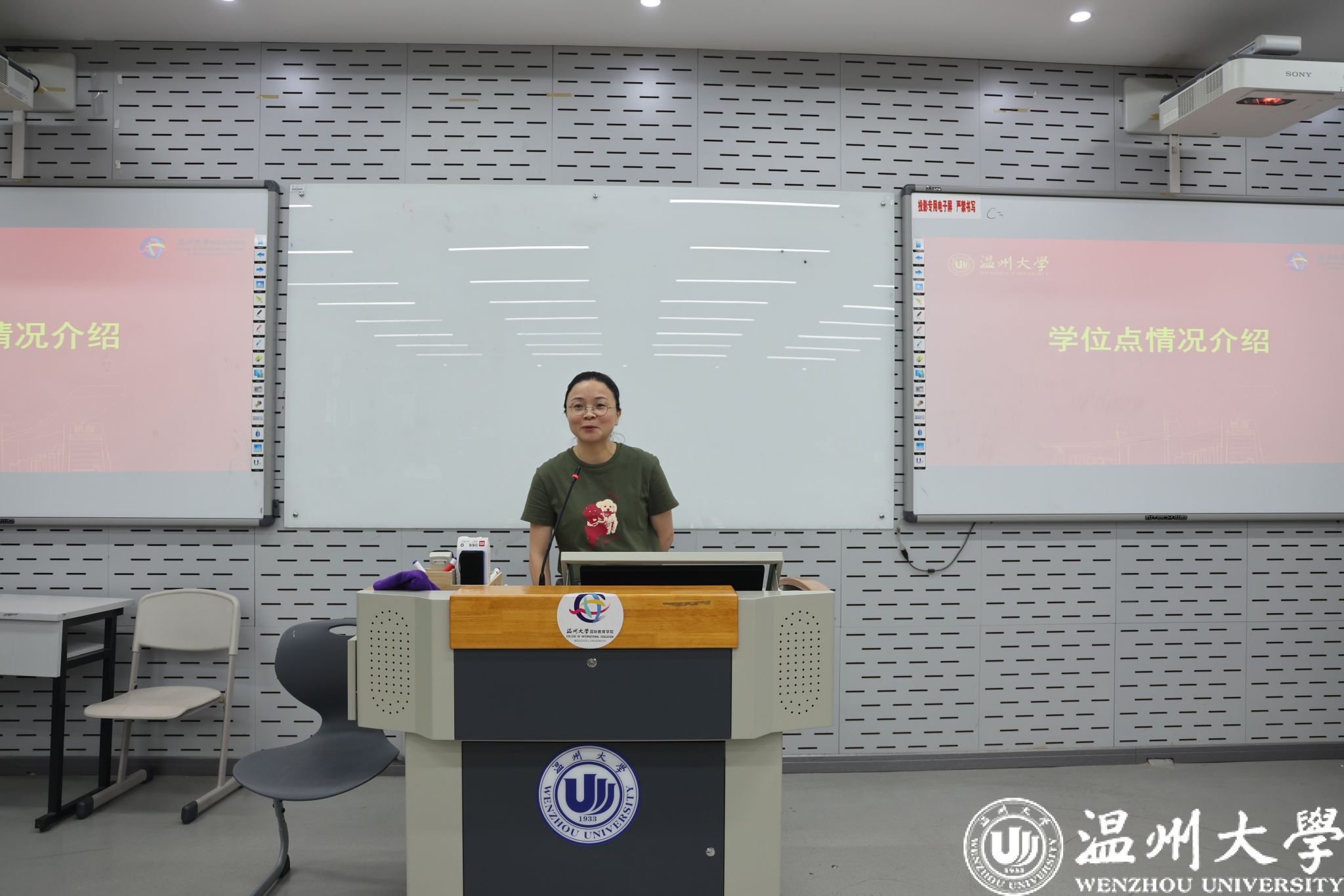 国际中文教育专业硕士点负责人郑娟曼老师为2025级新生作学位点介绍。她从发展历程切入:自2019年起,国际中文教育硕士专业学生规模逐年扩大,学科实力持续增强。郑老师系统介绍了培养体系、课程设置与实践要求,并分享了“2025届毕业生100%就业率”的优异成绩——毕业生涵盖考编、海外汉语志愿者等多向发展路径,为新生描绘出清晰的学业与职业前景。