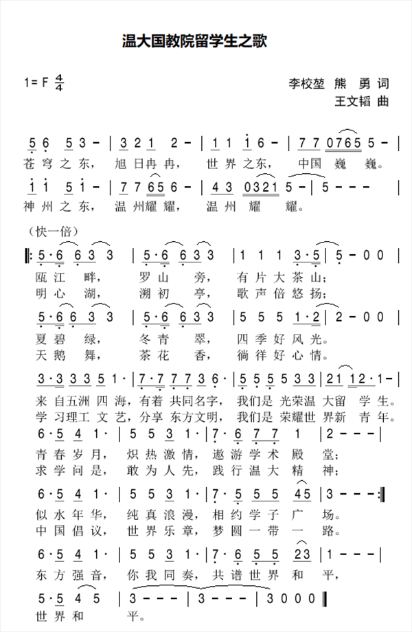 作曲联合制作的《温大国教院留学生之歌》今日首发。经查实,国内其他高校尚无专门的留学生歌曲,此歌也因此成为国内首创的高校留学生主题原创歌曲。