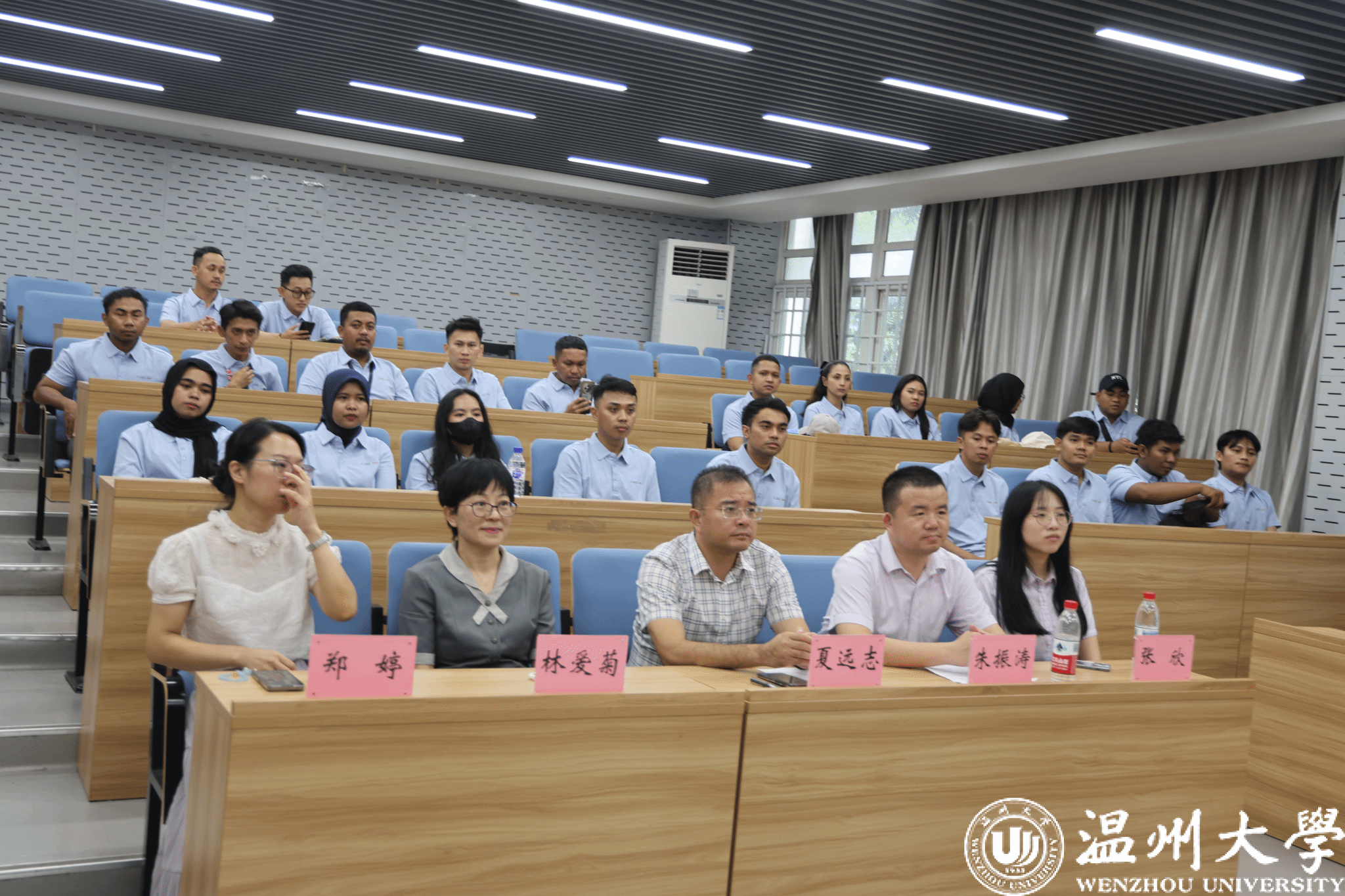 院长夏远志分别致辞,欢迎新生加入温大大家庭,并充分肯定“青山班”作为校企合作与产教融合平台,在服务“一带一路”倡议、培养“懂中国、会中文、善管理”的国际化人才方面取得的成效。他们勉励学员们珍惜学习机会,夯实语言基础,深入理解中国文化,积极促进中印尼人文交流,成长为具备国际视野的复合型人才。