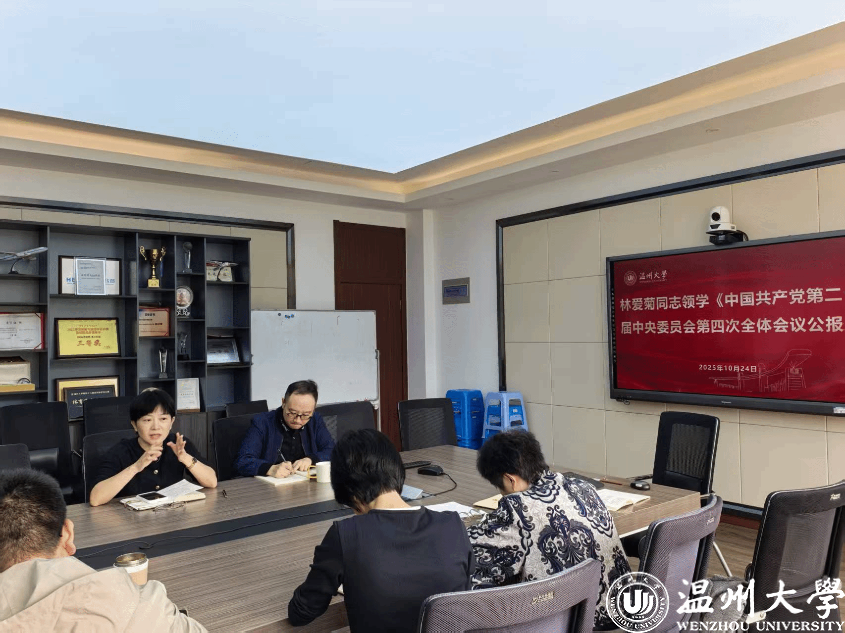 党总支书记林爱菊同志领学了《中国共产党第二十届中央委员会第四次全体会议公报》。她对公报中的重要内容,以及与高校发展、教育对外开放等密切相关的内容进行了领学,深入剖析公报中提出的各项政策方针和战略部署,让党员们对全会精神有了更为系统和全面的理解。