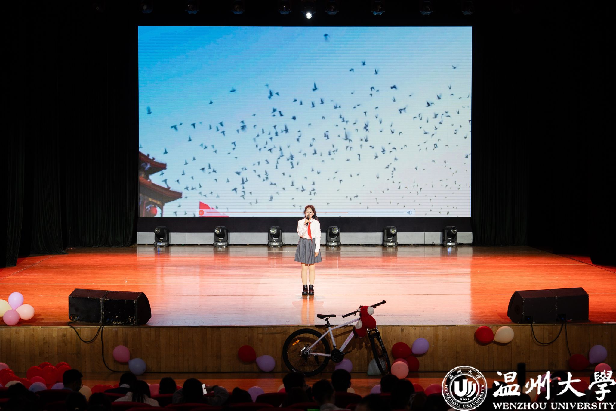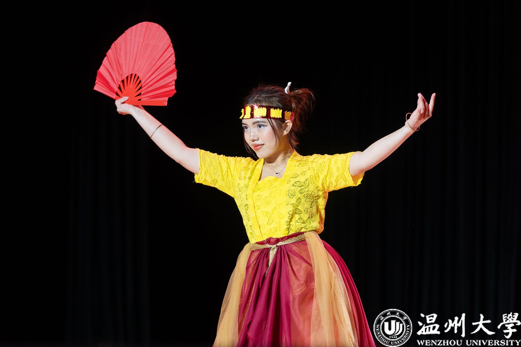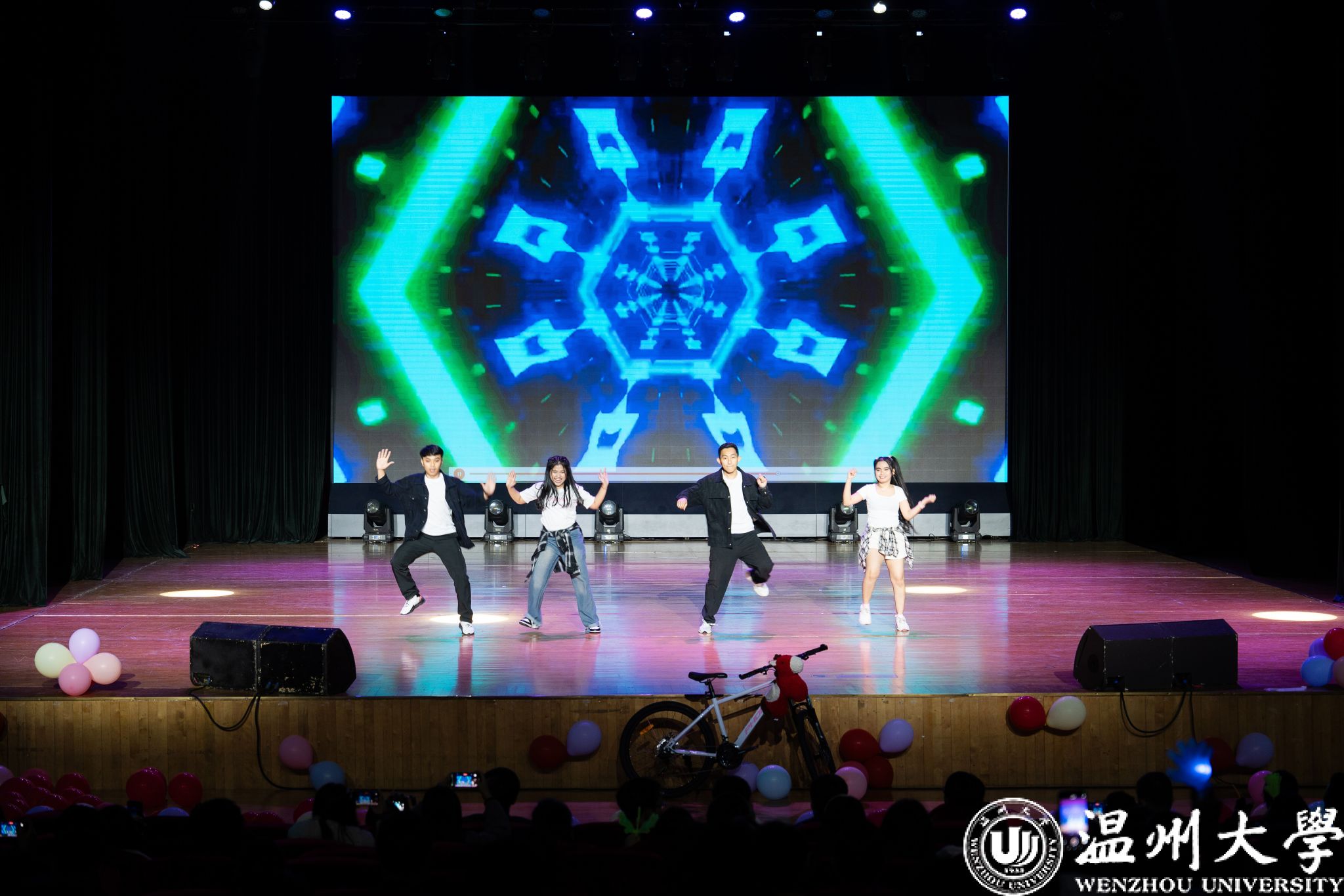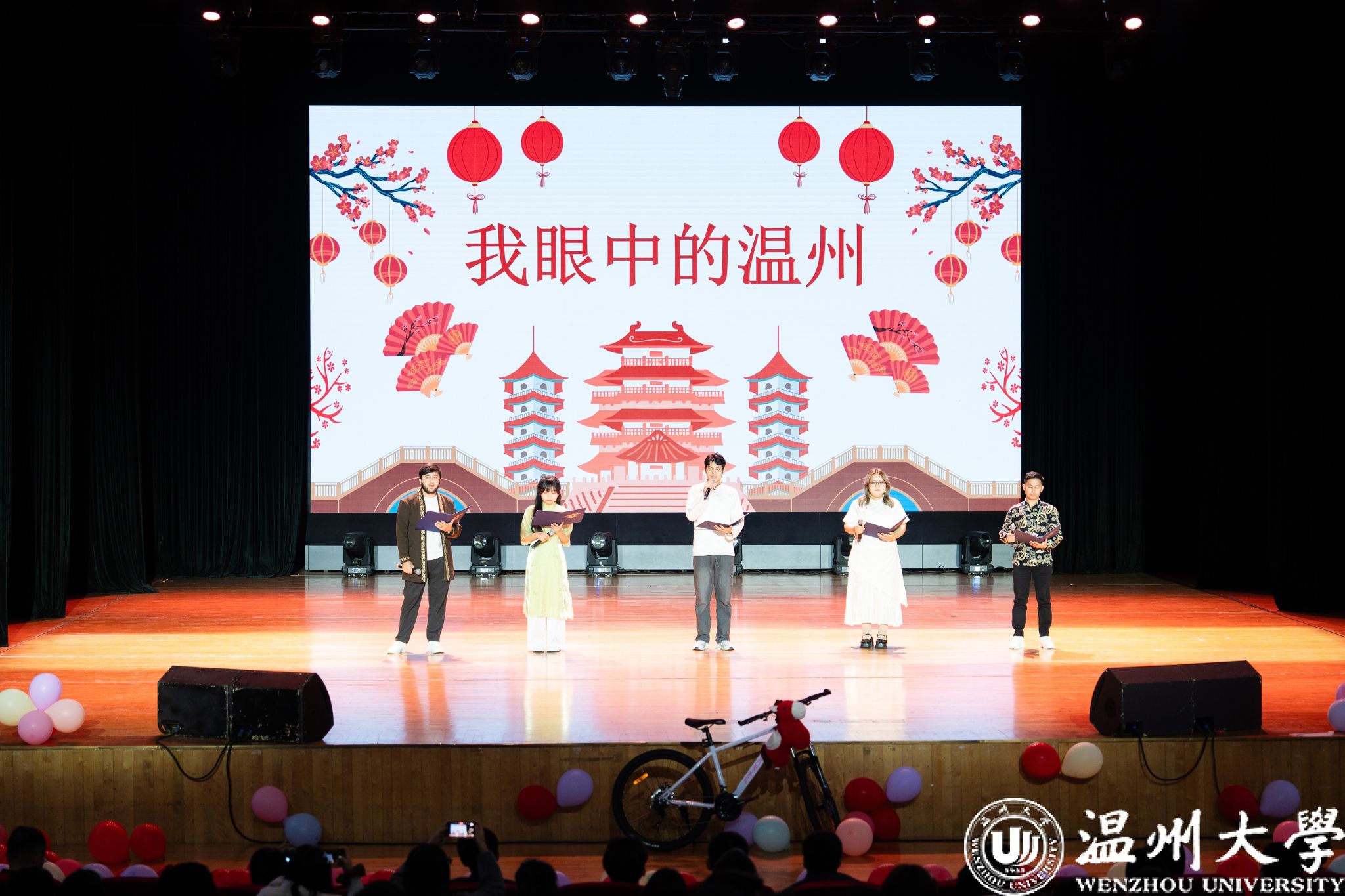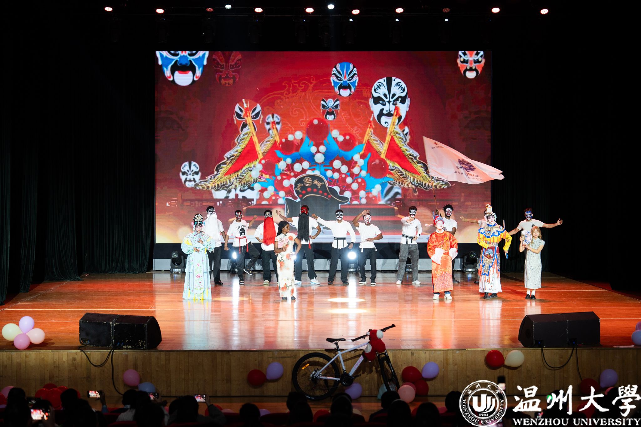 晚会特别设置了“留星闪耀——‘三全五育三服务’育人成果表彰盛典”环节。通过《华彩梨园》《温大国际龙舟队赛记》《区块链游戏