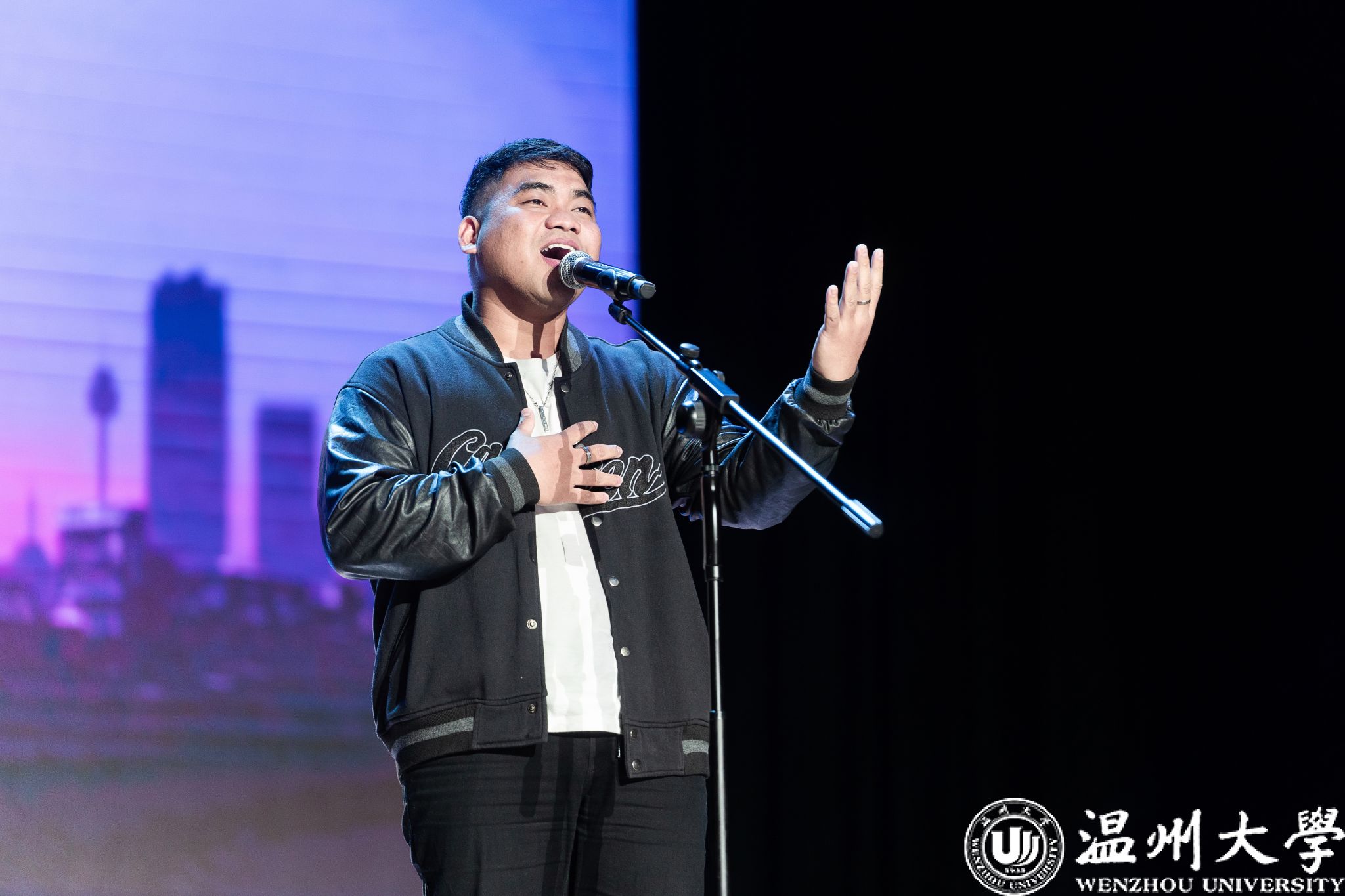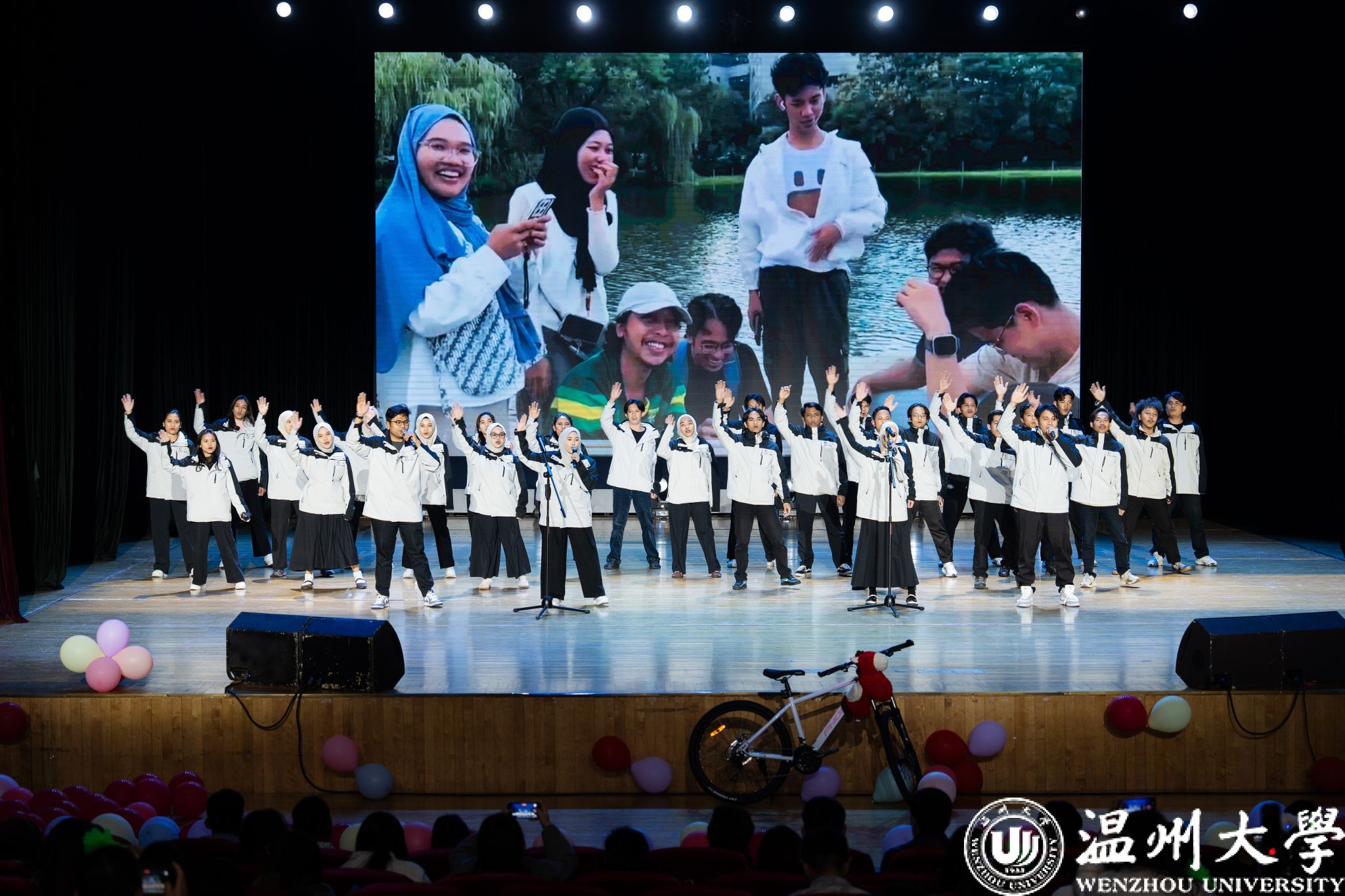 晚会在热情洋溢的新年祝福视频中拉开序幕。开场节目精彩纷呈,由印度尼西亚学生带来的舞蹈《Western-Indonesian mixed》,生动展现了东西方文化交融的独特魅力与蓬勃活力;朗诵《我眼中的温州》深情诉说国际学子对第二故乡温州的感知与热爱;青山班全体学子合唱的《隐形的翅膀》,歌声清澈而充满力量,唱出了青年学子追逐梦想的坚定与希望。