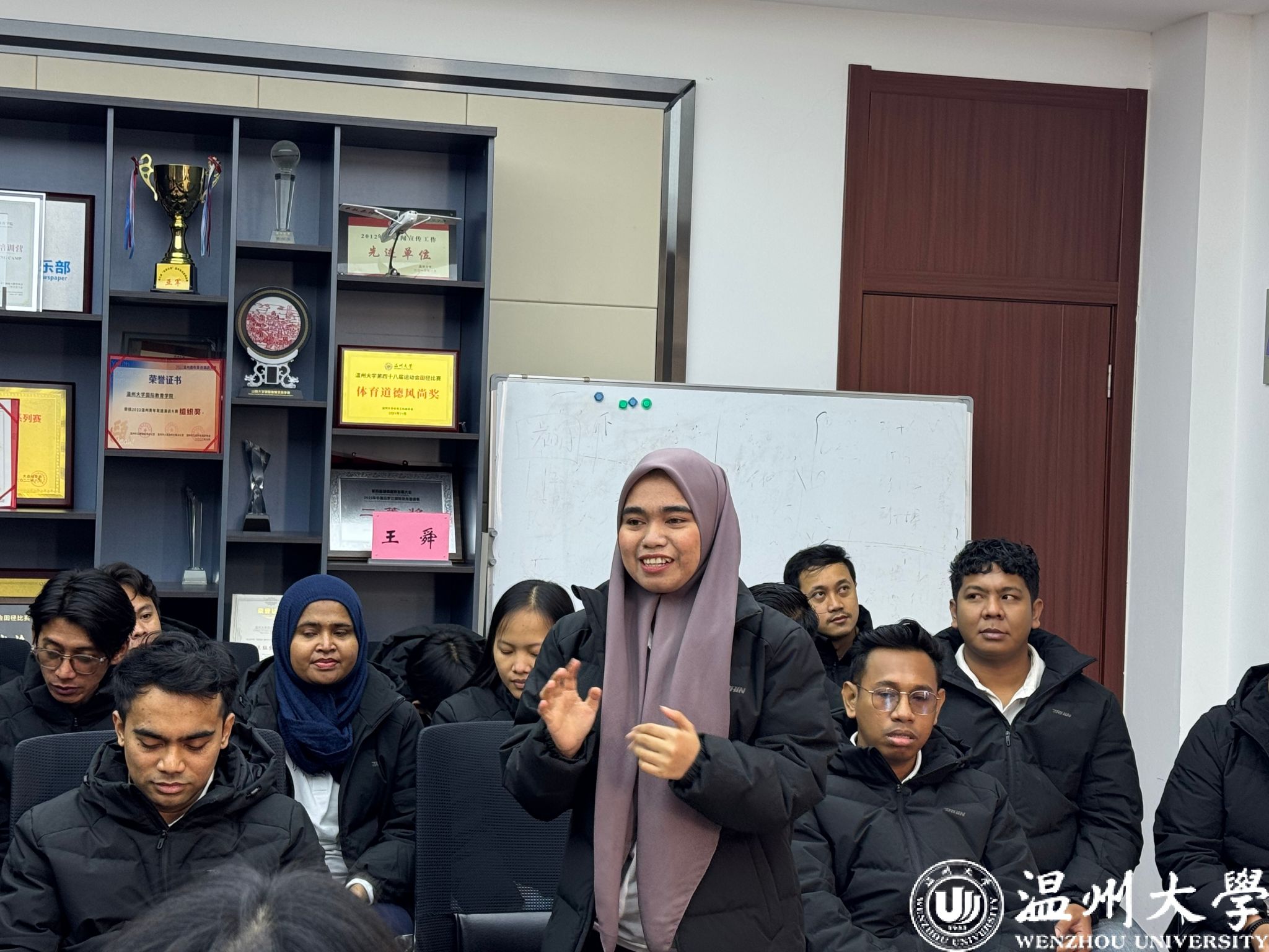 随后,青山班(IWIP)学员们依次发言,分享近四个月在温大的学习与生活的感悟。学员们真诚地讲述了从初到中国时的忐忑,到逐渐适应并融入校园生活的喜悦;从对中文的陌生,到如今能够进行日常沟通甚至理解部分文化内涵的成就感。他们特别感谢永青集团及区块链游戏