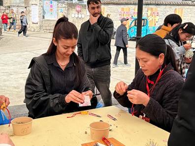 活动现场,百桌延绵,万人同欢,锣鼓声与欢笑交织。国际学生们在志愿者的协助下,沉浸于“尝顺宴、遇魁星、看巡游、逛市集、赏非遗”的丰富活动中。从独具风味的百家宴菜肴,到灵动传神的木偶戏、气势恢宏的碇步龙表演,学生们在亲身体验中深刻感受到了中华传统节俗的凝聚力与泰顺深厚的地域文化魅力。