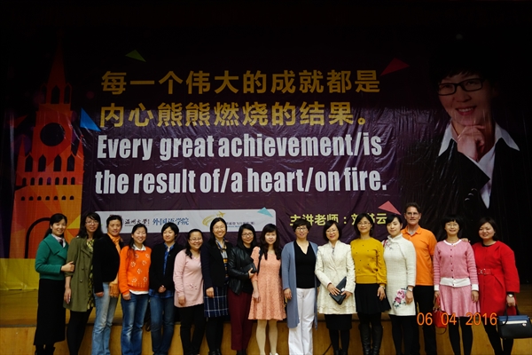 培养出来的人才既要具备满足自身生存需求的专业知识和能力,又要符合用人单位的国际化发展需求。朱教授将学生的专业和专业课的公共基础课——大学外语比喻成学生的左、右翅膀。只要让这两只“翅膀”强壮起来,学生就能够在世界这个“地球村”里飞得更高,走得更远,因而从闭塞的地方小作坊幸福地登上放眼世界的国际化就业平台,前途一片灿烂。然而,学生的国际化发展(to be international)需要越过社会对学生外语能力认可这道槛。那些大学英语全国四、六级考试成绩合格的学生往往受到用人单位的青睐,雅思、托福等国际测试成绩合格的学生比较容易踏出国门深造留学,通过全国研究生外语统一考试的学生才有机会被录取攻读硕士学位。显然,就学生的专业学习和今后的发展而言,外语的作用举足轻重。朱教授指出,全体大学外语教师正在为提高学生的外语应用能力,帮助学生to be international做出应有的努力,本次分享会即是一个例子。朱教授希望在座的同学们从外教Ely的大学生涯以及刘书云老师的“认知自我,狂恋英语,游历世界,精彩人生”等演说中认识自我、掌握学好英语的方法。