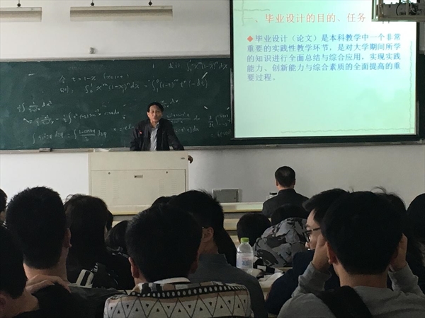 郑崇伟老师针对学生的毕业论文(设计)作了专题辅导,他向全体学生介绍了毕业论文设计的目的和任务、指导老师的主要职责以及学生的主要任务,梳理了毕业论文设计的各项操作流程,明确了毕业设计的课题要求和选题要求,对赴台学生如何及时有效地完成毕业论文设计提出了具体要求。
