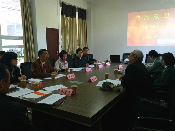 书记朱建平、副院长陈军、国际化课程教研室主任王洪斌、办公室副主任廖一帆、教学科科长黄呼尔励、学生科副科长谢坚等与认证专家组就认证日程、项目目标、认证流程、认证注意事项等进行了交流和讨论。