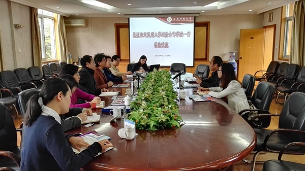 党委副书记杨秀伟向我们详细介绍了该院中外合作办学项目的发展历史、特色品牌和教学管理经验等,随后双方在学分管理、师资建设、课程设计、教学监督和项目基地建设等方面作了有益的交流,双方期盼今后两校两院在中外合作办学方面进一步加强交流与合作,进一步提升两校的中外合作办学水平。