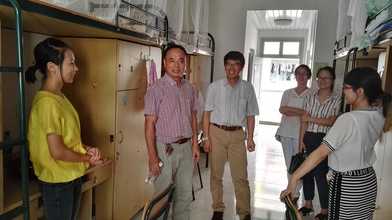 朱建平书记亲切地与新生交谈,详细询问新生的班级信息、了解新生的生源出处,关切新生在新环境的各项需求,并鼓励大家要积极转变角色定位,合理调整自己以尽快适应大学的生活环境和学习要求。与此同时,朱书记仔细查看了宿舍的各项设备,着重强调了日常生活中的安全防范工作的重要性,特别提醒大家要提高警觉意识和自我保护意识。最后,朱书记还在为人处世、学习、生活等各方面与新生作了经验交流,对新生四年的学习生活提出了希望,并预祝大家在国际合作区块链游戏