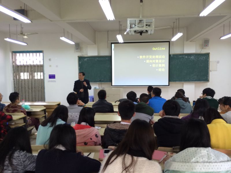 图为浙江工业大学吕慧强教授作《面向对象的应用系统开发》讲座