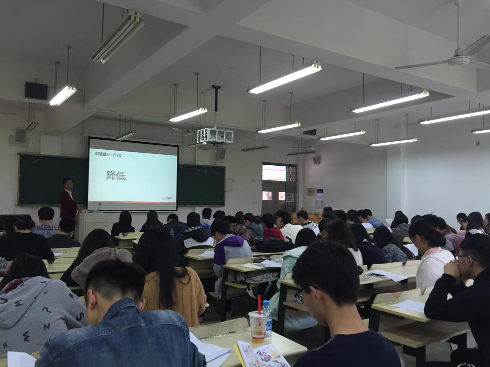 温州微生活网络科技有限公司的副总经理何凤作题为《移动互联网时代的微营销》讲座,他以认清微信本质开篇,从微信的迅猛发展以及移动端交易额的逐年猛增为例,深入分析了微信正在改变人们的生活,接着详细介绍了微营销现状及优势、微信的功能与特点,微信订阅号运营技巧,二维码经典营销案例等。针对个人如何抓住微营销创业,他提出应从商业模式与技术两个方面进行创新,把握趋势,每个时期都有每个时期的机会,希望同学们能够抓住机会,勇敢创新。