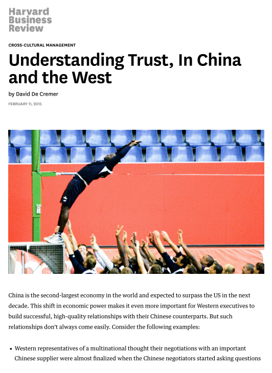 为第二作者单位在顶级期刊《哈佛商业评论》上发表文章《Understanding Trust, In China and the West》。