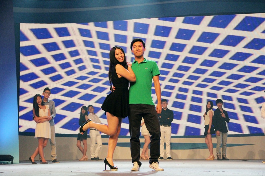 来自美国的营员陈秋霞穿着黑色的长裙和同样来自美国酷酷的刘洋为六个营地的全体营员演唱了这首轻快、抒情的I’m yours,全场掀起了一股美国风。清新的美国风刚结束,中国风立刻来袭,而且是最炫的中国民族风。七对青春逼人的帅哥靓妹为全场带来了展现他们最美风采的舞台秀。他们将舞台当T台,褪下黄色营服,换上正式礼服,尽情地过了一把模特瘾。第一对是来自美国的营员王品淼和来自意大利的营员邹钧意的“御哥御姐秀”;紧接着来自葡萄牙的周文渊和来自意大利的娄西蒙娜上演了“跳抱秀”;“甜蜜秀”由来自意大利的胡施炜和来自奥地利的唐婷婷为大家呈现;两位意大利营员陈雨芙和陈梓航以1米73和1米83的身高为全场带来“超模秀”;谁说没有1米7,1米8就不能当模特,来自法国的黄梨娜和来自葡萄牙的周保罗就破了这个说法,他们呈上的是“泰坦尼克经典镜头秀”;接着出场的是“性感秀”由两位来自意大利的营员陈露娜和傅佐超上演;压轴的是来自西班牙的张晓莉和来自捷克的杜杰,呈现的是韩剧经典动作“我爱你”。最后,青年营小可爱——周紫宸以一袭黑色爵士服、迈着有力的猫步登场,迎来全场欢呼声。