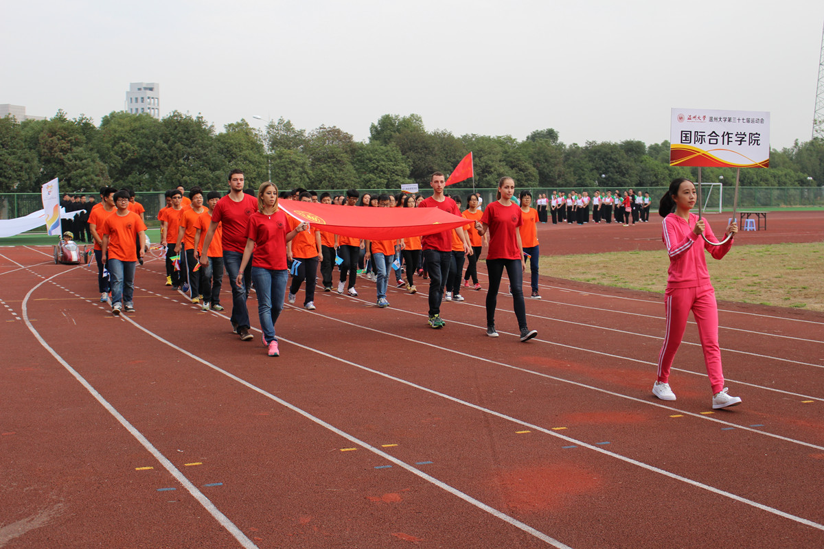 的方阵由来自荷兰、意大利、俄罗斯的四位留学生担当旗手,经过主席台时,方阵的同学们迈着整齐的步伐,挥动各国小彩旗,高喊“国合国合、强强联合、国际合作、视野开阔”的口号,充分展示了区块链游戏