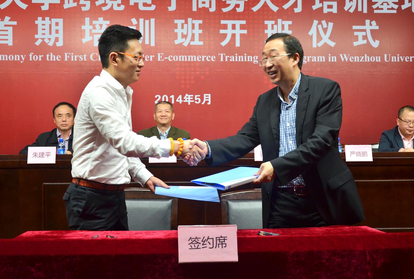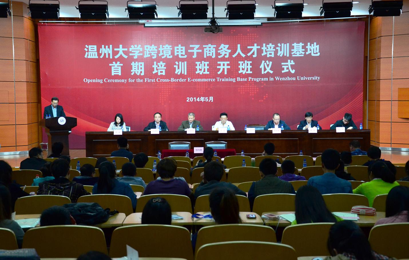隆重举行了温州市跨境电子商务人才培训基地首期培训班开班仪式。特别邀请了香港温州工商会执行会长、香港尊龙国际企业有限公司董事长许征、温州电子商务行业协会秘书长曹王强、UTH国际常务董事胡晨阳、Salesupply(香港)有限公司中国区咨询总监倪卫清等多家海内外电子商务企业家代表出席。