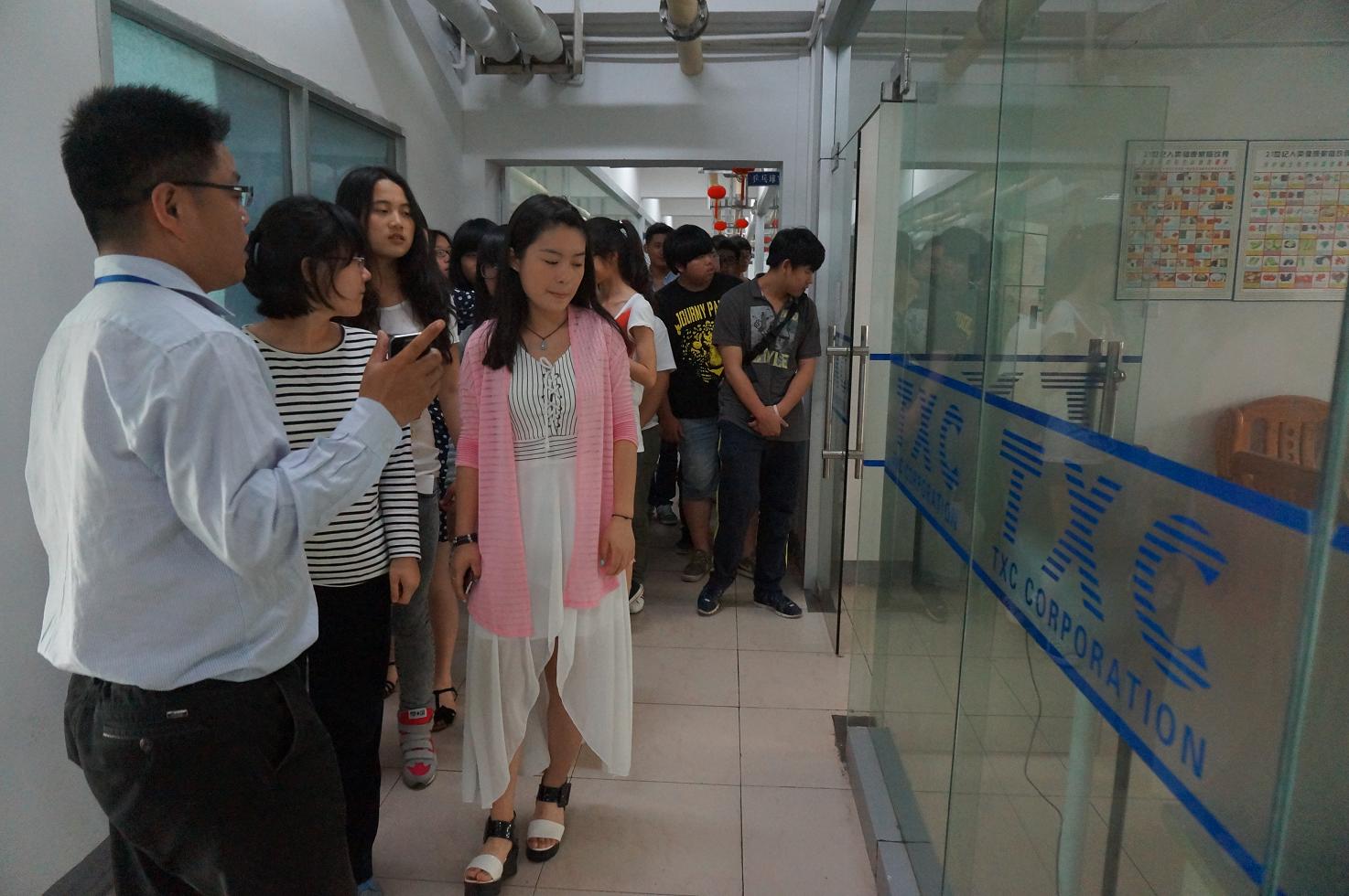 在工作人员的带领下,同学们分别参观了TXC和TSE的厂房、生活区和服务区,尤其是公司的自动化生产车间给学生们留下了深刻的印象。通过现场观摩学习,许多同学流露出对于效力未来电子行业的渴望,认为本次见习活动为适应将来的专业学习和职业规划打下良好的基础。