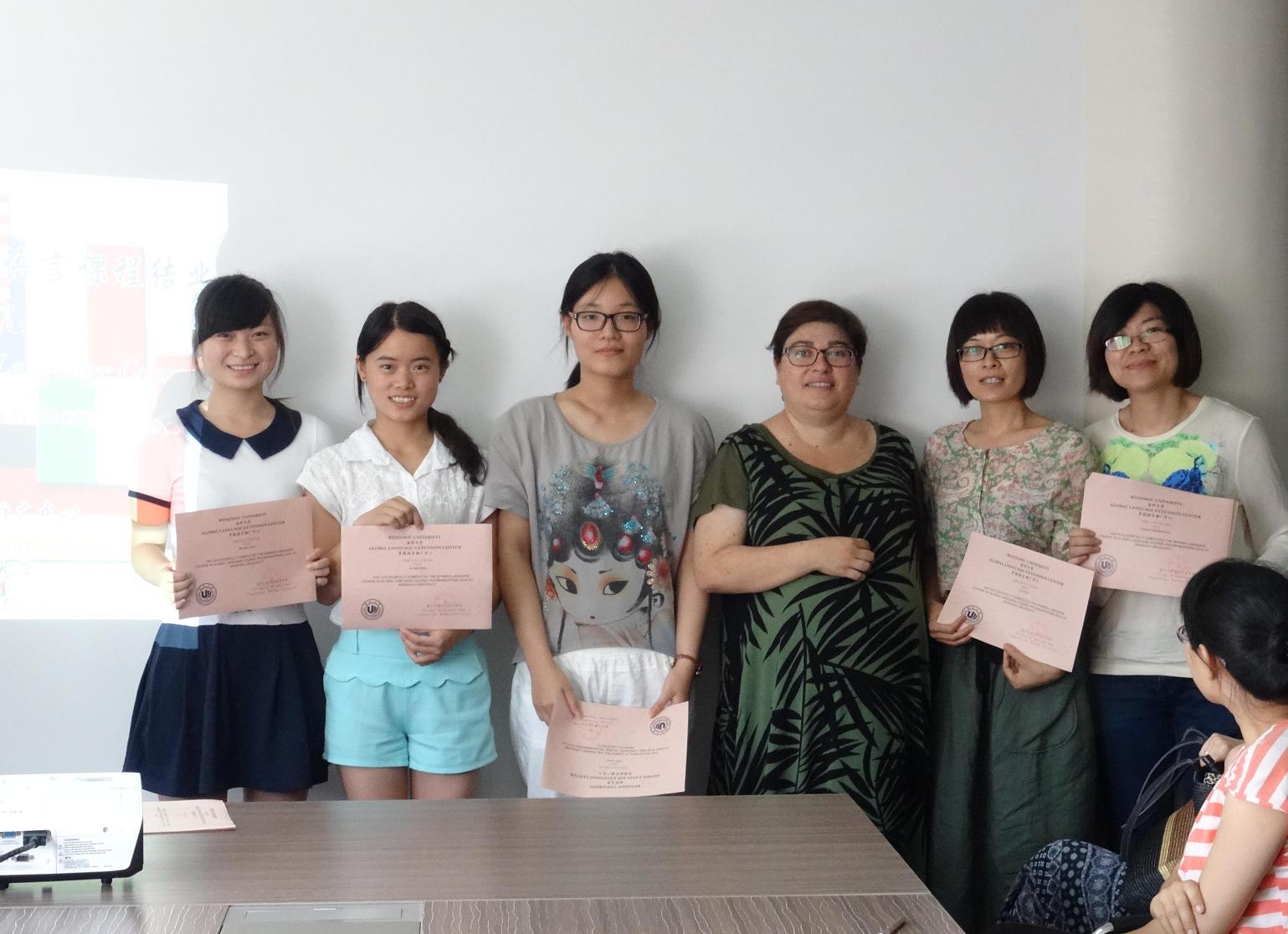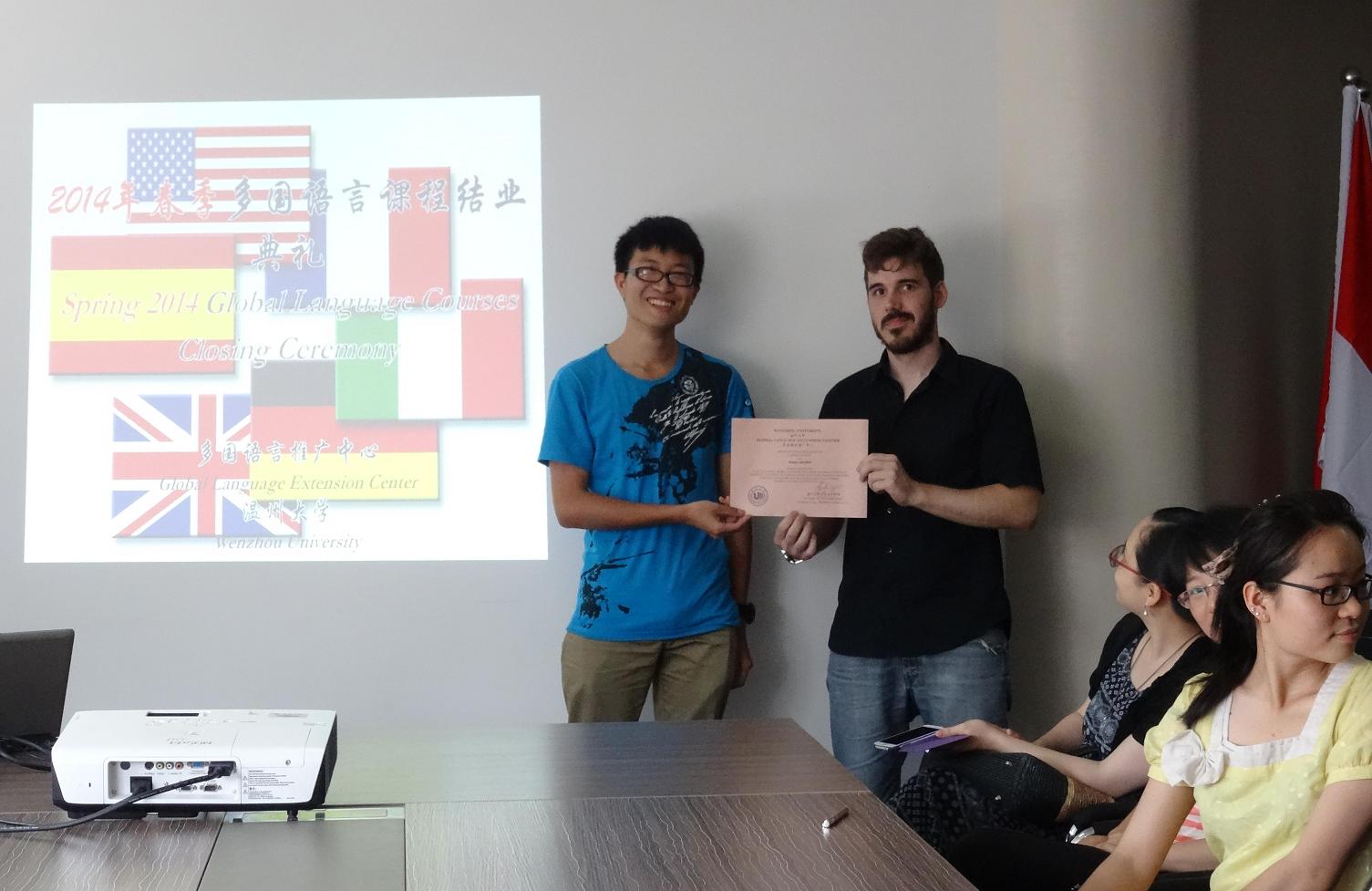 专家楼会议室举行了2014年春季多国语言课程结业典礼。本次典礼旨在让参与课程师生们了解课程的运行,并为授课老师及优秀学员颁发证书。