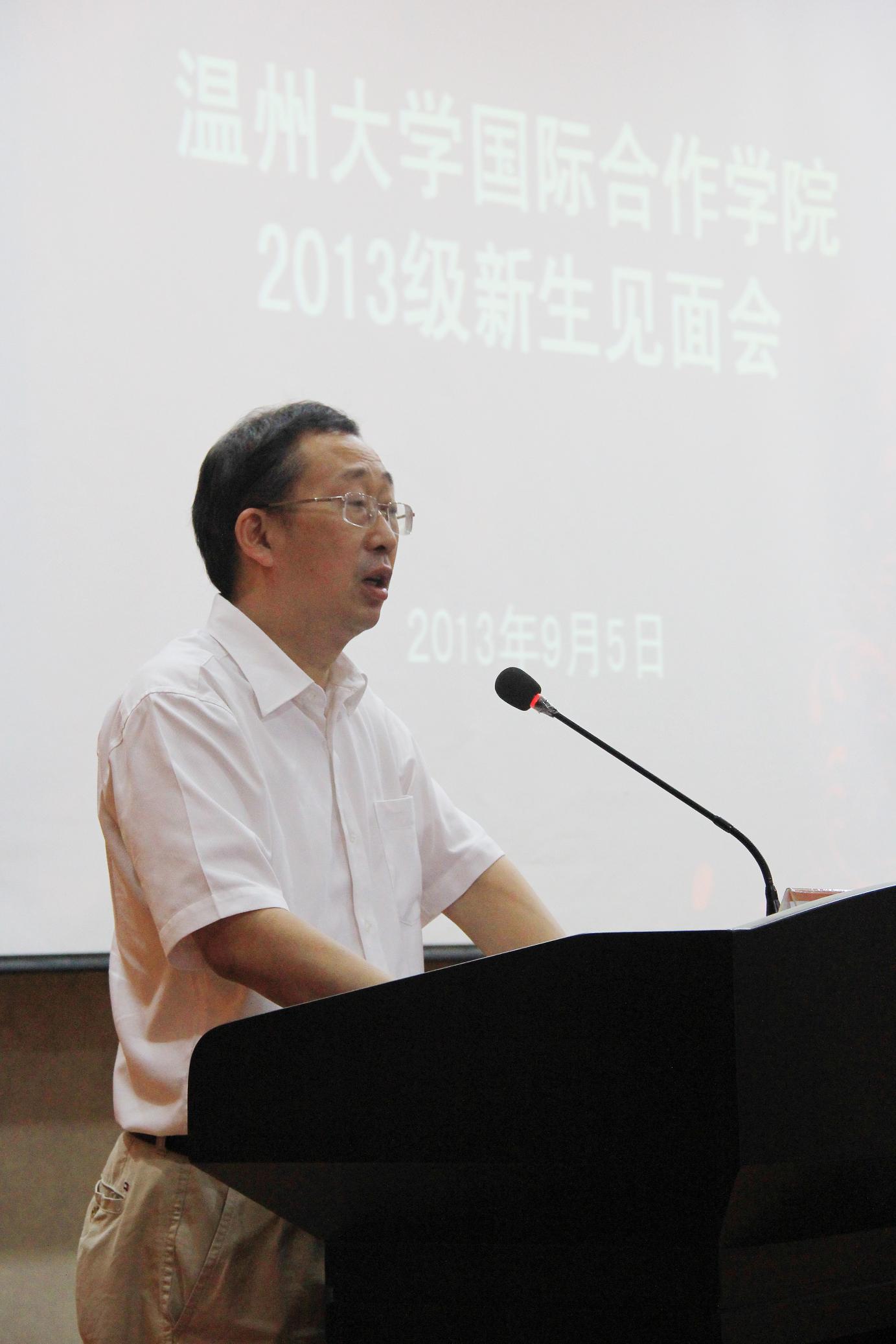 致欢迎辞:他首先代表全体教职员工对2013级160余名新生的到来表示热烈的欢迎。然后对新生语重心长地提出了几点要求,他说,新同学要去三个地方:即教室、图书馆、运动场,在教室充电,在图书馆蓄电,在运动场放电;要能吃三样东西:即吃“苦”、吃“亏”、吃“堑”,“吃苦”,苦尽甘来;“吃亏”,吃亏是福; “吃堑”,吃一堑、长一智。最后他忠心祝愿所有新生能在充满机遇和挑战的大学之路上,用青春的激情和智慧,点燃心中的理想,脚踏实地,刻苦努力,谱写出人生中精彩的一页。