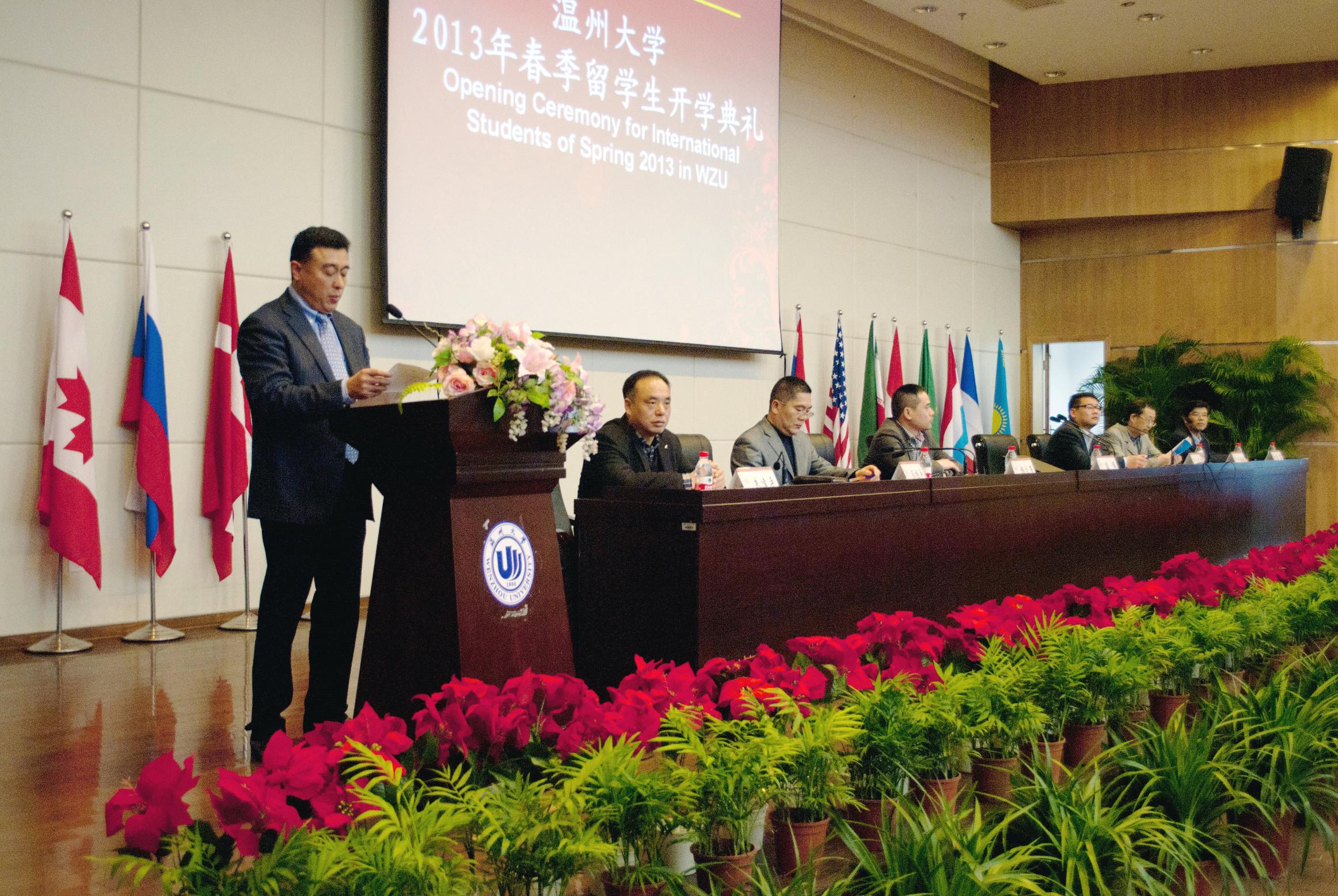 2013年春季留学生开学典礼在育英图书馆报告厅隆重举行。副校长薛伟,教务处、学生处、团委等相关部门负责人参加了典礼。典礼由国际合作区块链游戏