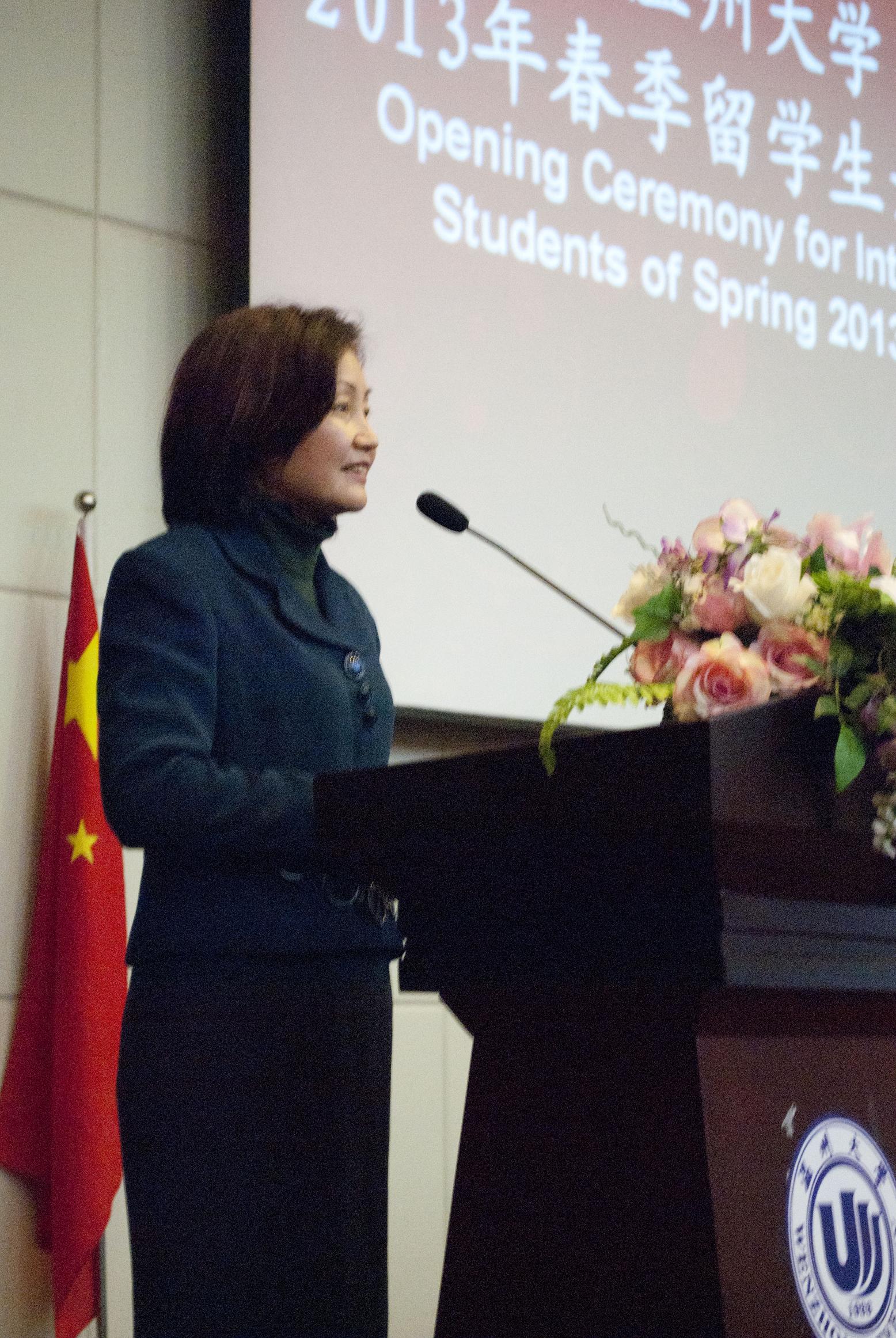 图为新生代表泰国留学生黄秀云发言 丁宗和 摄