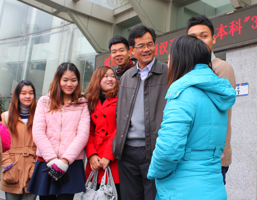 的领导、老师出席了欢送会,并与留学生们合影留念。