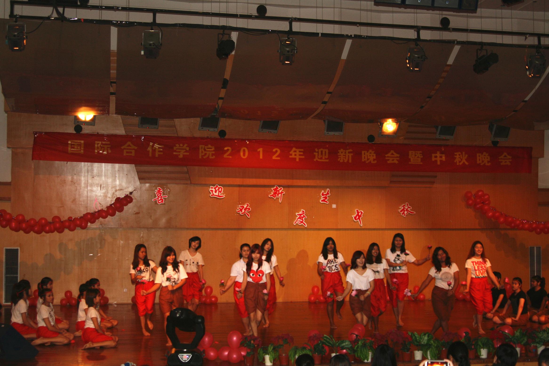 迎新晚会暨中秋晚会在北校音乐厅火热开启。院党总支书记朱建平、教学科科长张雪萍、学生科副科长陈赞安,以及教师代表、留学生代表、部分老生和全体新生共计260余人参加了此次晚会。