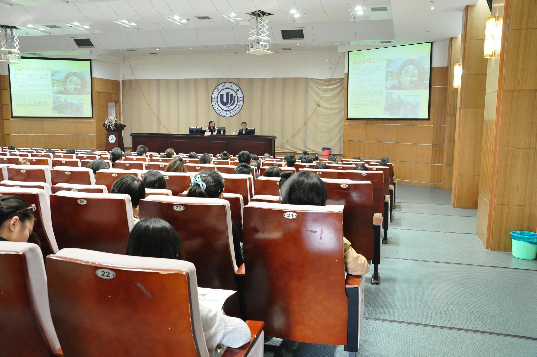 美国高等教育专题暨赴美留学项目说明会”。说明会由国际合作项目开发办公室主任、美国印第安纳访问学者包含丽老师主讲。