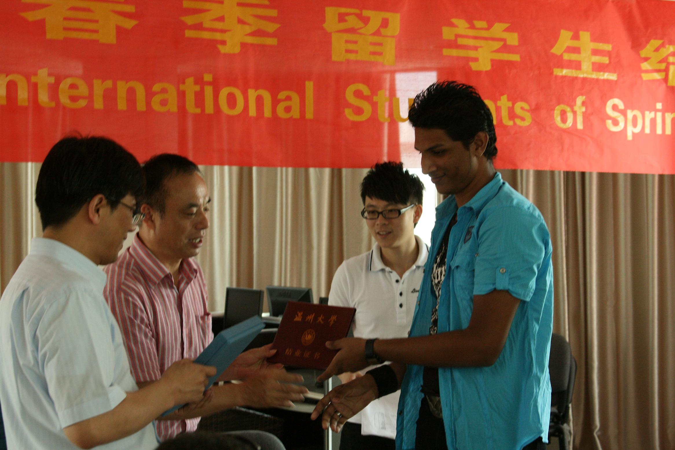 陈军副院长回顾了毕业生的学习生涯,他欣喜地看到留学生们能很快地适应学习和生活,较好地学习和了解中国文化,特别是浙江温州的历史、文化。他希望留学生们回国后,能成为国际文化交流的使者,促进中国文化在其各自国家的传播。