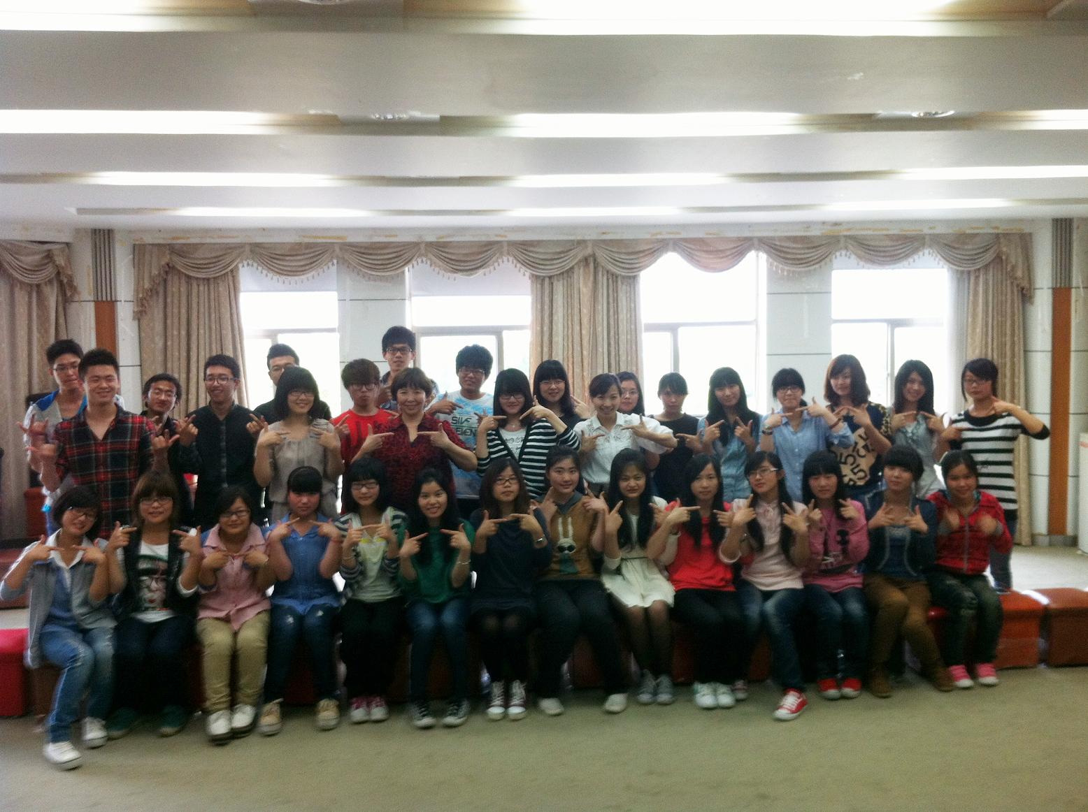 中丹班的全体同学在北校行政楼311室举行了"微笑之路,你我同行"的主题团体心理辅导活动,本次活动由校学生处张海音老师带队。班主任张鲜艳老师全程参与。