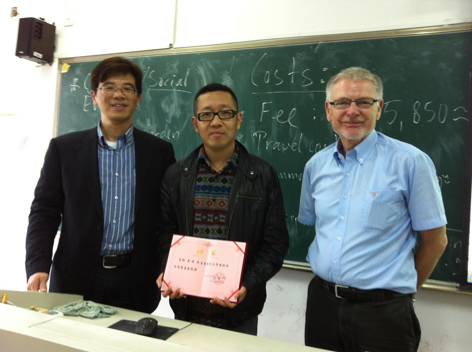 客座教授的仪式。院长严晓鹏、副院长陈军、中丹合作项目丹方项目经理Jorgen Dalhoff先生参加了聘任仪式。