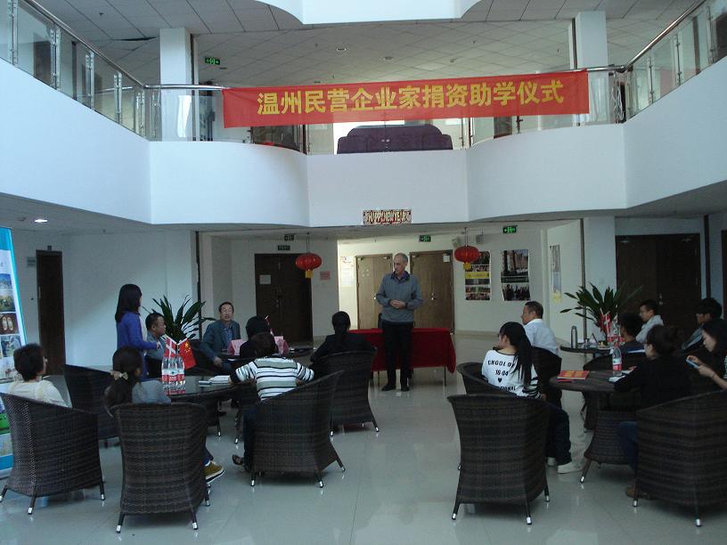 举行了温州民营企业家捐资助学捐赠仪式。今年有4名2011级中丹合作班的学生获得了温州知名企业家金权金董事长的资助。