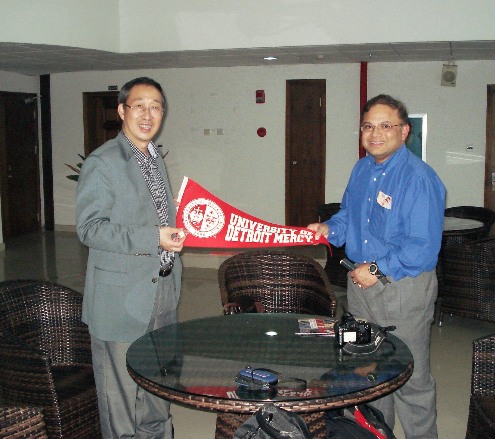 。严晓鹏院长热情接待了来访客人。双方详细讨论了目前已开展的硕士合作项目的细节及下一阶段的合作方向。此外,部分已出国学生家长也与来访客人进行了会面,Das博士与林博士对学生在底特律大学的学习及生活提出建议。