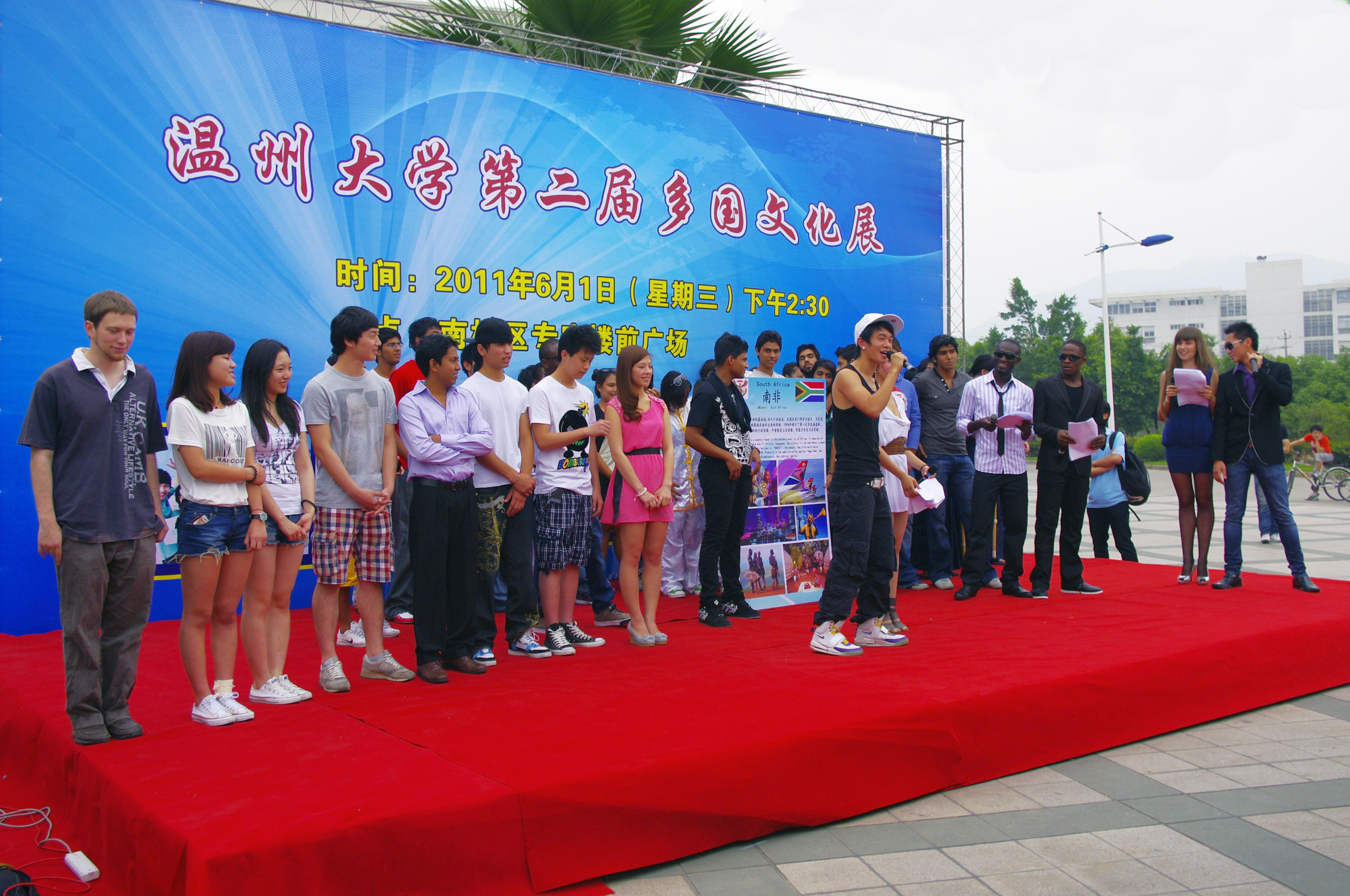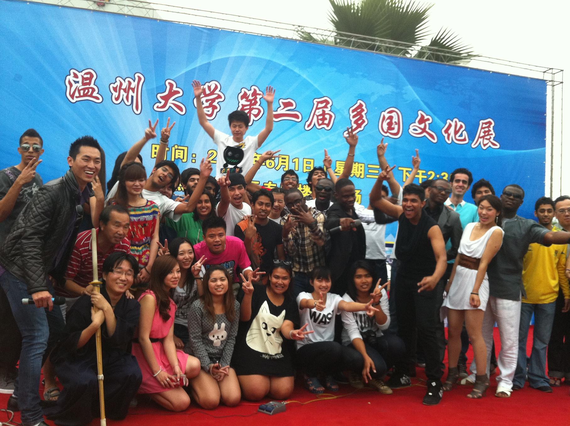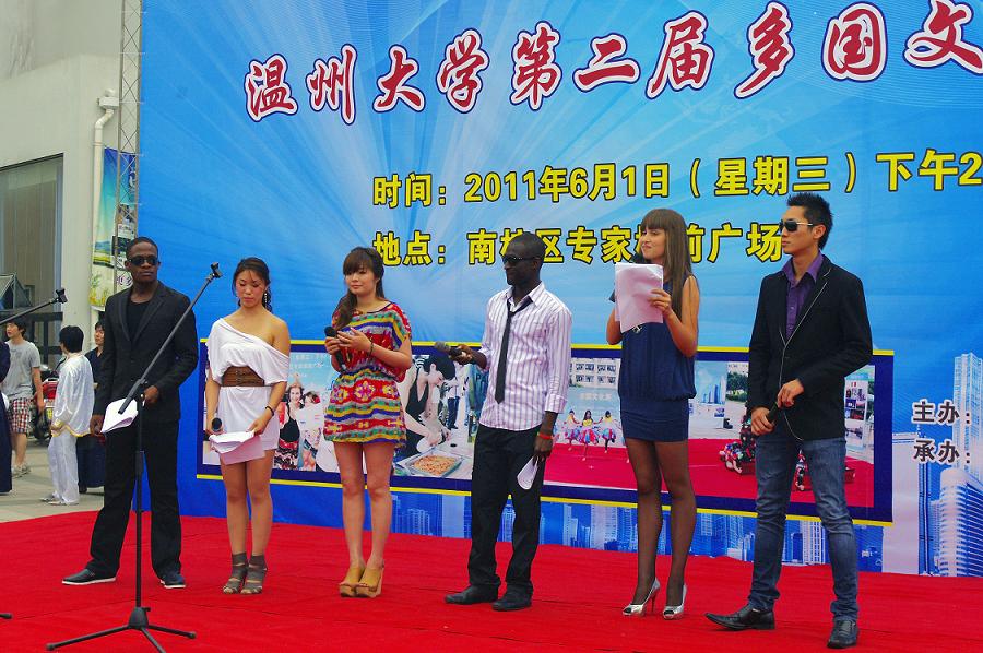 伴随着阵阵喝彩声,文艺演出正式开始,来自乌克兰、荷兰、印度尼西亚、加纳、肯尼亚的留学生在中文教师的带领下登台主持,他们用幽默的语言拉开了演出的序幕。孟加拉留学生的独舞热情奔放;日本留学生的剑术表演和南非学生的空手道别具特色;泰国留学生带来的葫芦丝演奏将中国乐器和温州民谣结合起来,叮叮当的音乐引人入胜;来自法国、荷兰、南非、乌克兰、加纳、尼日利亚等国的留学生的舞蹈引爆全场;华裔留学生表演了精彩的舞蹈和歌曲,并烹制了美味的意大利面;少儿爵士舞和相声表演为过节的儿童送上最好的礼物;中国武术表演和乐队演奏将文化展推向了高潮。