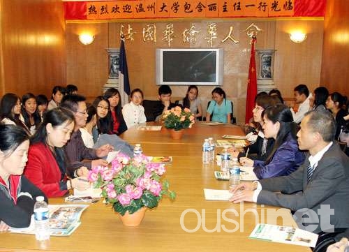 代表团到访法国华侨华人会,举行座谈,介绍该校推出的面向海外华人子弟的教学项目。
