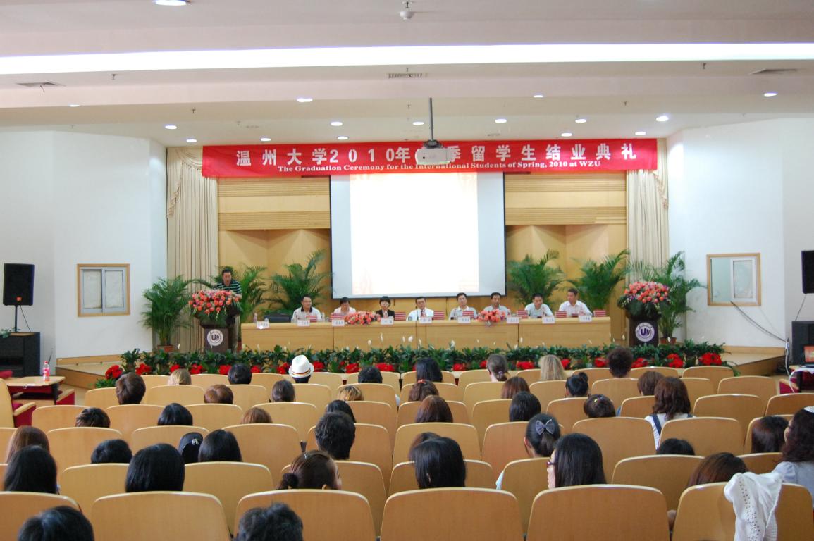 2010年春季留学生结业典礼于南校区雁山厅隆重举行。副校长薛伟教授出席。外事处、教务处、学生处、校友办公室、团委、人文区块链游戏