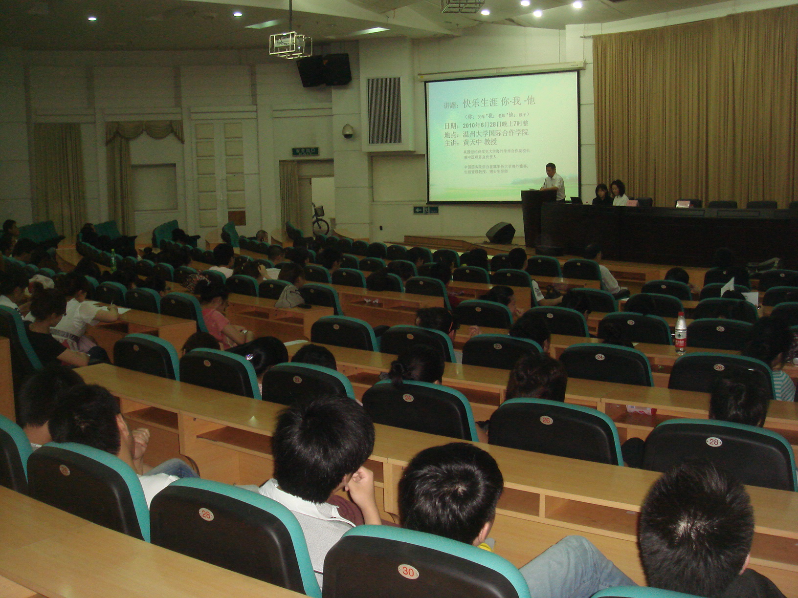 路校区信息楼报告厅为广大的温州考生作“关于如何规划快乐生涯”的讲座。