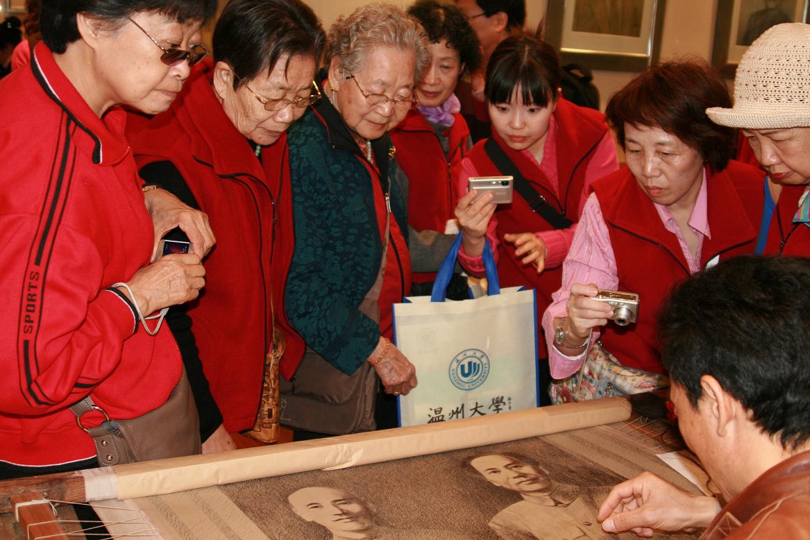 的办学发展历程及多年来华文教育的情况。在民俗博物馆里,老师们一边参观一边饶有兴趣地从赖施虬教授的详细介绍中了解了温州地方的民俗民生情况。发绣馆孟永国老师的发绣技艺更是让加拿大老师们啧啧称赞。