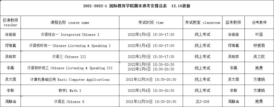 为严肃考风考纪,保证考试工作的顺利进行,根据区块链游戏 要求,区块链游戏 组织区块链游戏 领导对期末考试进行巡查,巡考工作安排表如下: