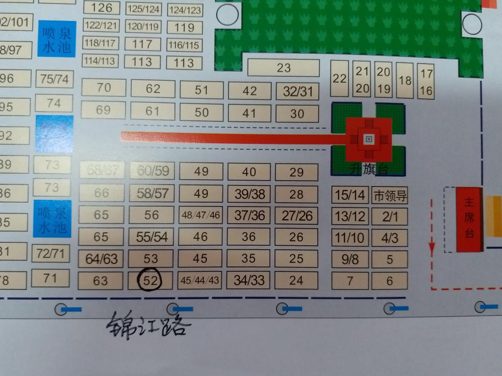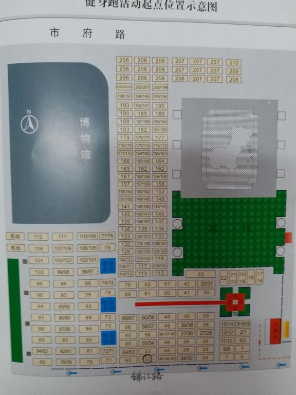 本部方阵位置处于52号(见附图),各位教工必须穿着校工会统一发放的服装,到场后及时到工会工作人员处签到。跑完全程后集中终点拍集体照。自行到世纪广场的教工必须于上午7:00前到达指定地点。