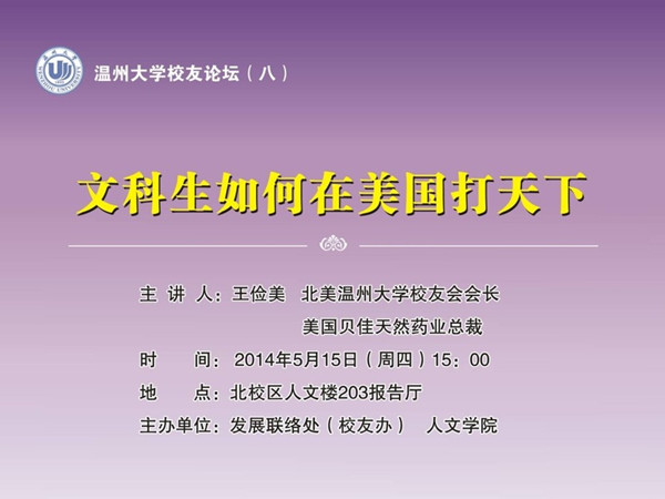 北美校友会会长。有五部专著和几十篇文艺评论,两百余万字,其中《美梦成真》、《我和遥遥在美国》(中国作家出版社版)、《洛杉矶女孩和她的创业老爸》(上海文艺出版社版)、《布达拉宫的金顶——西藏文化心理纪实》、长篇小说《美国,那家、那国》等颇有影响。