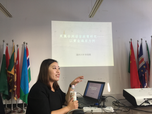 汉语国际推广教研室在3号楼311室开展了有关英属非洲语言政策研究为主题的学术沙龙。此次沙龙主讲人是张珉璐老师,由汉语国际推广教研室徐丽丽老师主持,包含丽副院长及教研室所有老师出席。