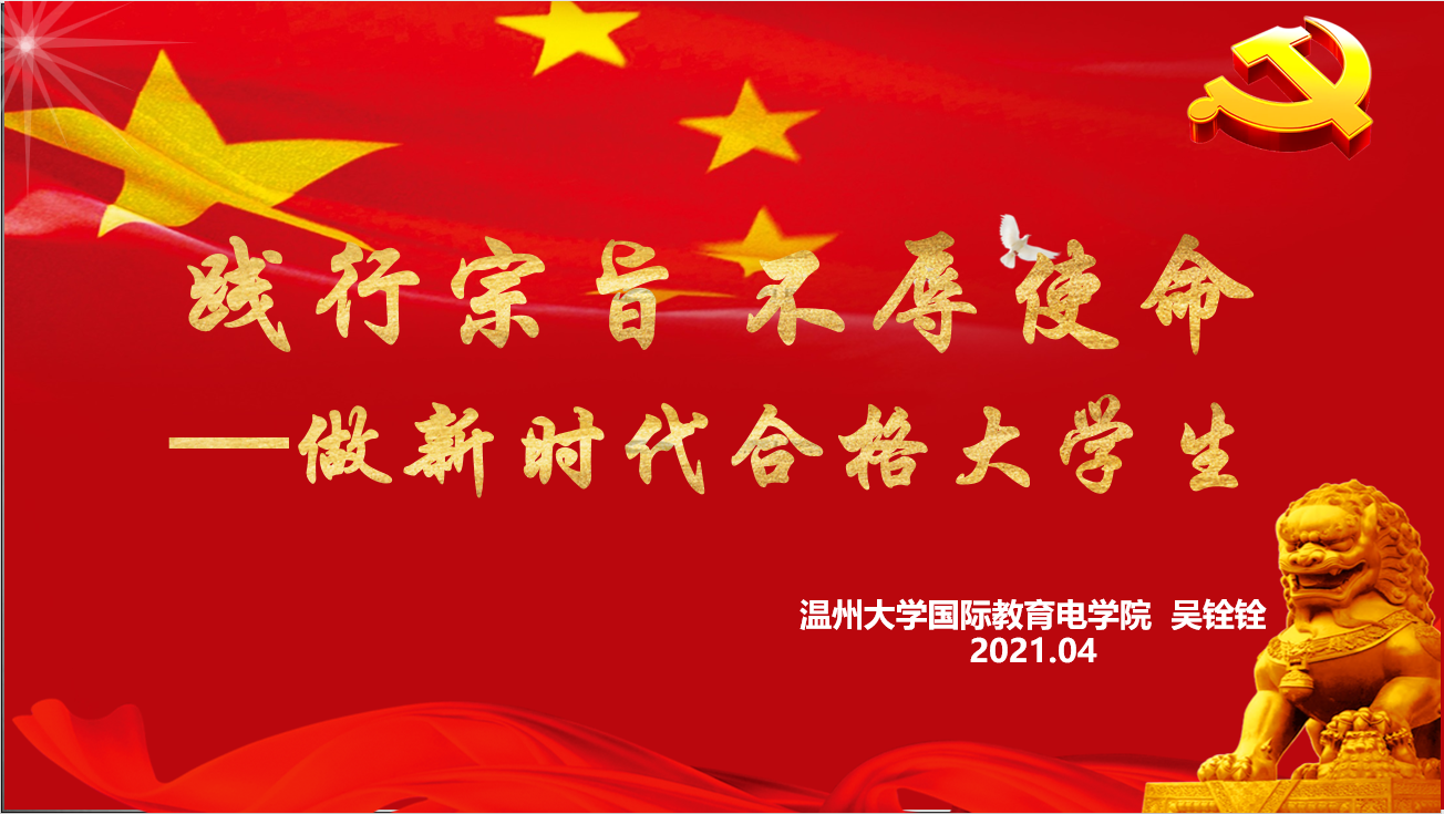 学生党支部在3-311开展了党史学习系列活动之书记讲党课。此次党课由学生党支部书记吴铨铨主讲,主题为“践行宗旨,不辱使命,做新时代合格大学生”。全体学生党员以线上线下相结合的方式参加了本次学习会。