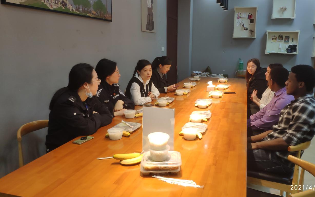 在交谈中,陈小菲警官向留学生们详细解读了与在华留学生相关的政策法规,对留学生比较关心的居留许可延期政策也做了充分解答。同时陈警官也提醒留学生们日常生活要谨防网络诈骗,不贪小便宜。