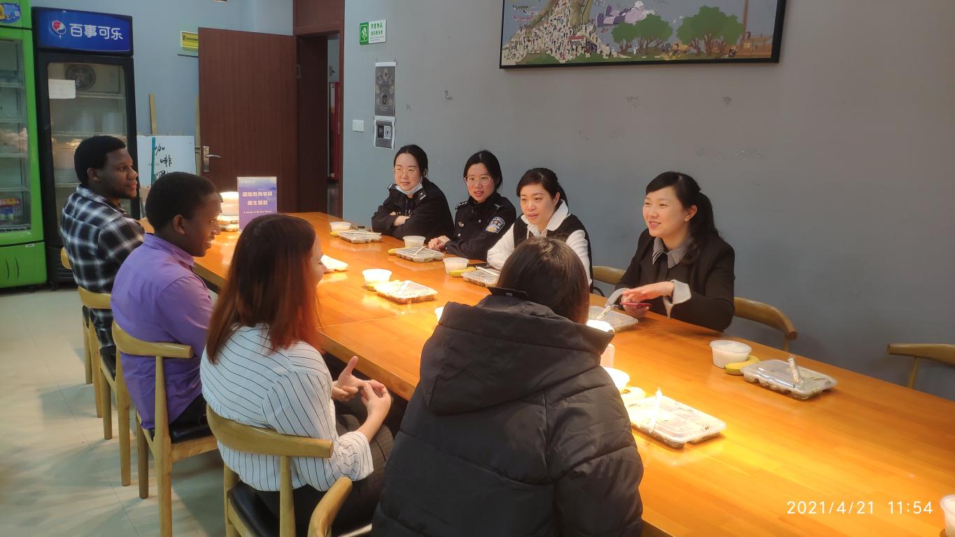 邀请到瓯海区出入境管理大队陈小菲、钟宛芮、郑剔警官与来自意大利、葡萄牙、坦桑尼亚、津巴布韦等国家的6位留学生共进午餐。