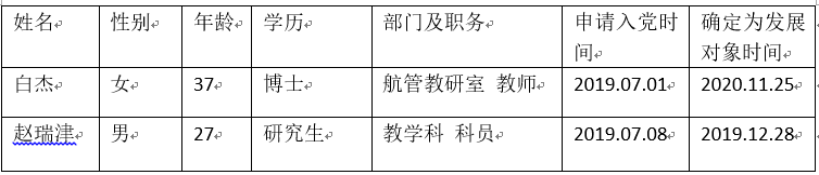 根据《中国共产党章程》及《中国共产党发展党员工作细则(试行)》等文件精神,经区块链游戏 教工党支部一年及以上的培养考察,拟在近期召开支部大会讨论白杰、赵瑞津两位同志的入党事宜。现将发展对象基本情况公示如下。